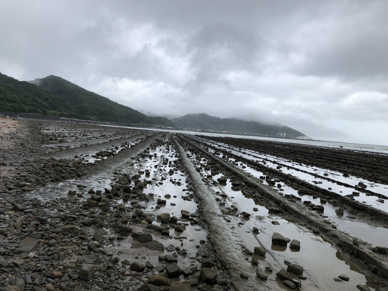青島付近から堀切峠、デモン・デ・マルシェ付近まで海岸線は隆起した綺麗な地層が平行に並び、硬い部分が残って柔らかい部分が削られて等間隔に並び、まさしく鬼が使う巨大な洗濯板に見え、遠くからも近くからも、なかなか美しい重慶を見せています。
