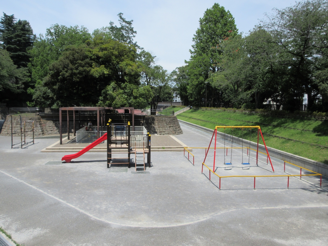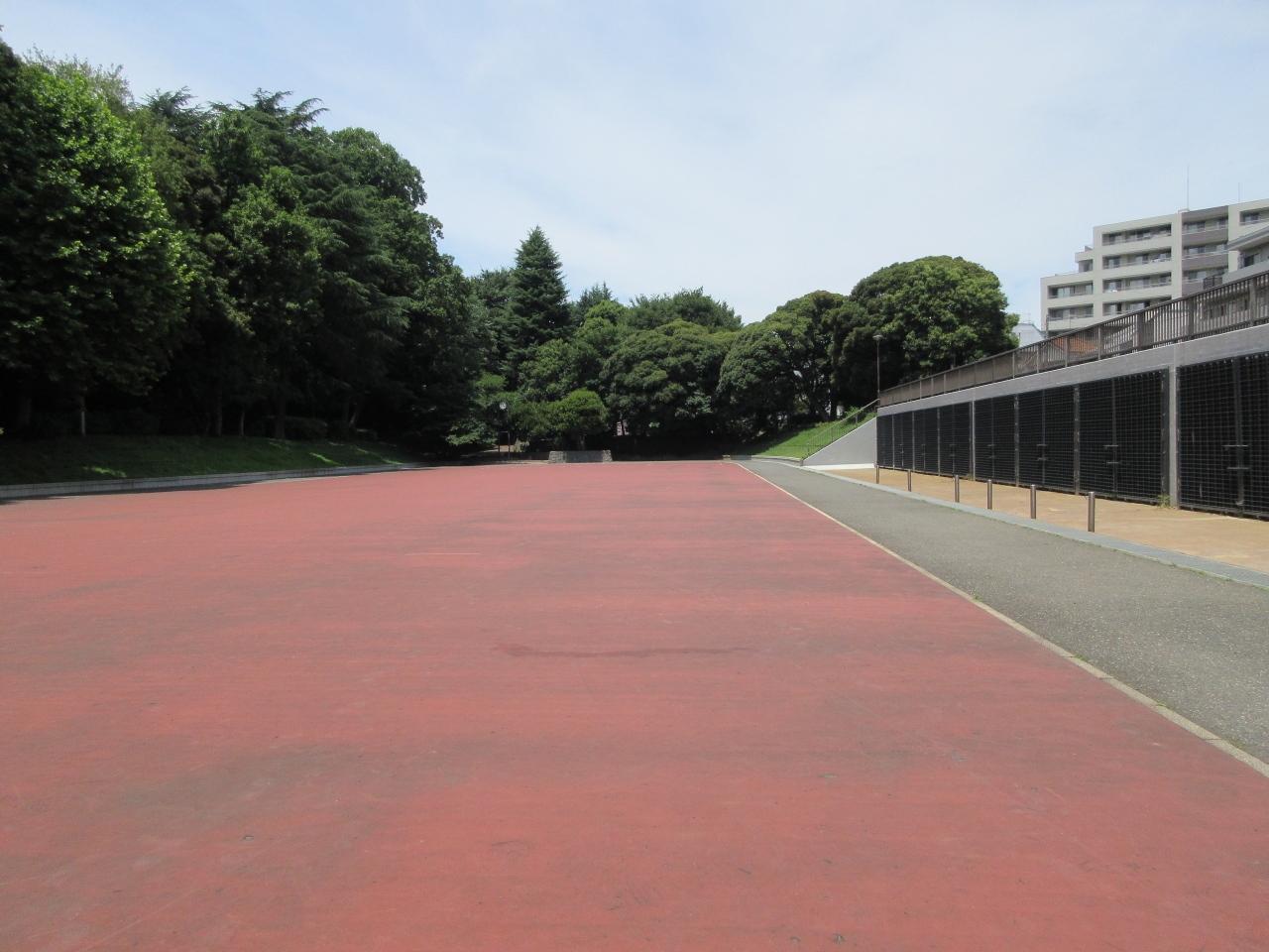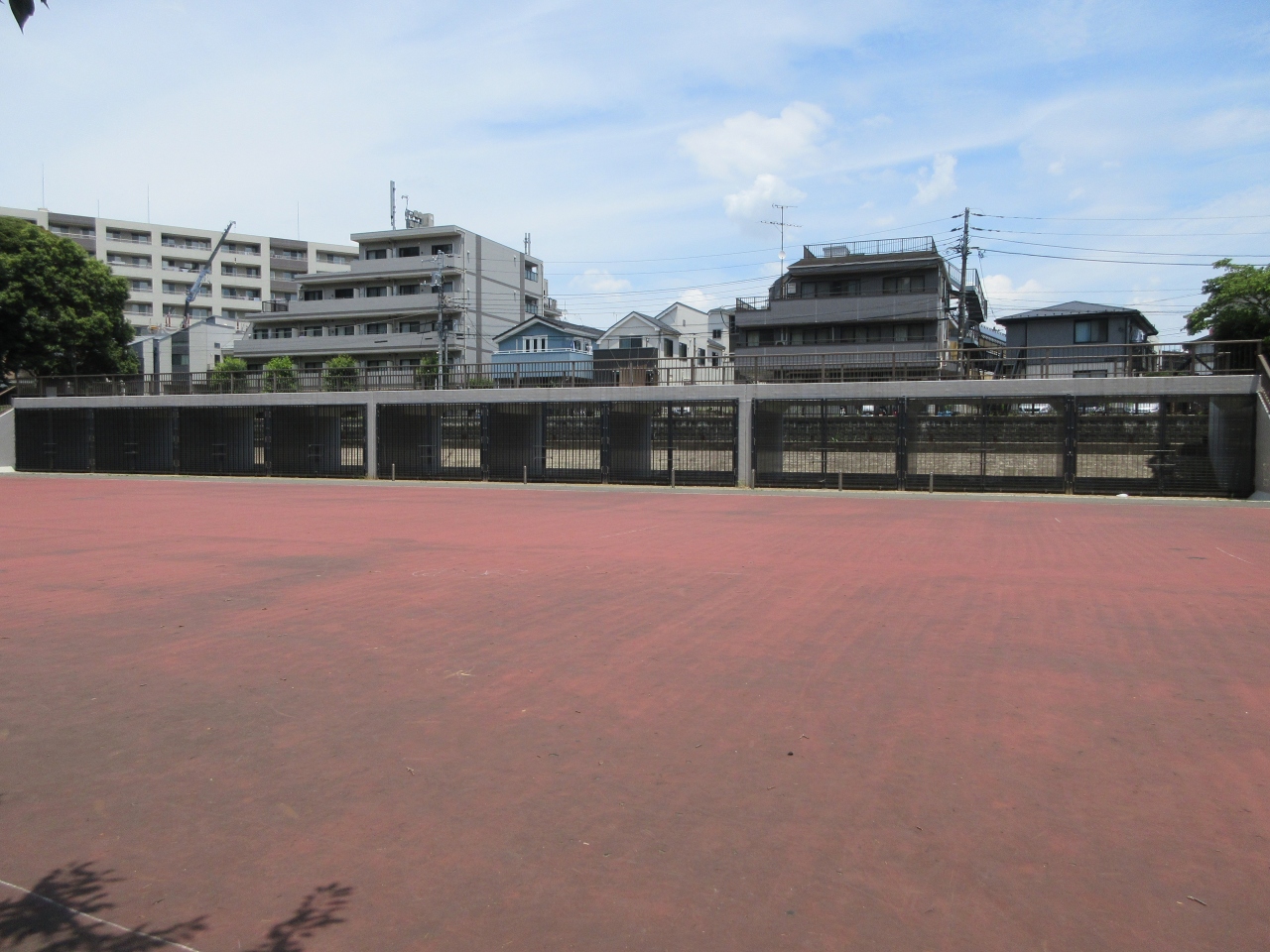 江古田の森公園の東にある多目的広場と児童遊園がある場所です。大雨で江古田川の水量が上昇すると越流堤から水が流れ、一時的に溜めるための場所です。川側に柵がある場所がありそこから水が流れ込むようになっています。森側は石垣で囲まれ、公園内の木が植えられている場所も石垣の上にあり、池になった場合木々を保護する造りになっています。ここのすぐ川下に住んでいた友人が20年ほど前に川があふれることがあると話していたことを思い出しました。水害の恐ろしさを知る現在、複雑な思いで水害の対策として使われている公園を見ました。