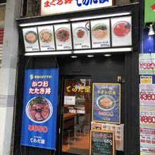 まぐろ丼のお店ですが、季節限定なのかかつおたたき丼を提供していました。個人的にかつおのたたきは好物のひとつなので、食すことに。印象としては、良いアプリ加減で美味しかったです。普段はそのものを食べるのが常ですが、丼ものというのもありかなと。場所は新宿西口、思い出横丁エリアの通りに面した側にあります。