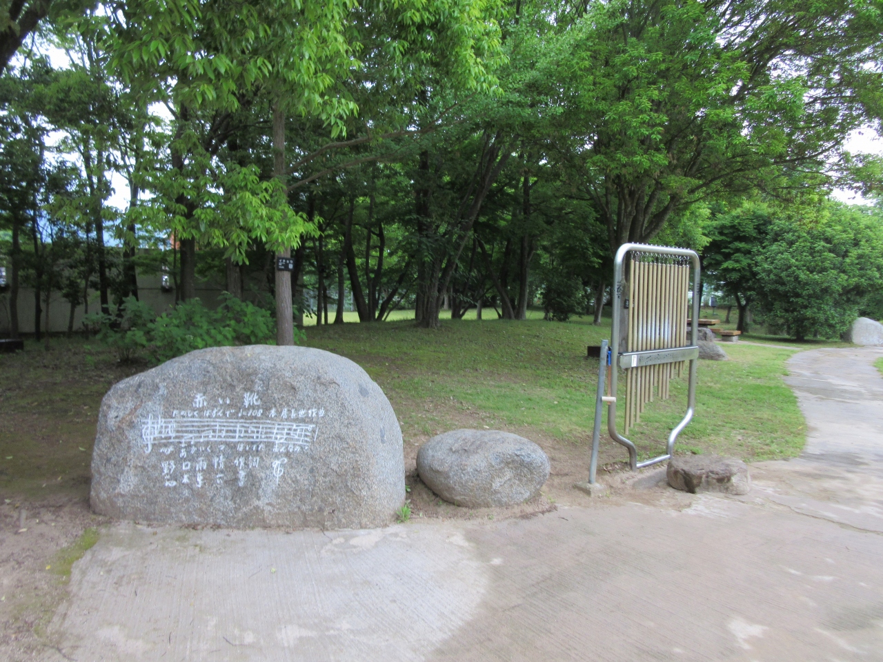 詩碑横の鐘を鳴らせばメロディを奏でるギミックも