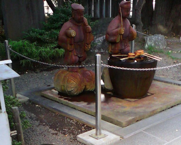 (七福神の1つ、香取神社には恵比寿様と大国様が祭られていて、境内の片隅に小さな像がありました)