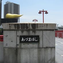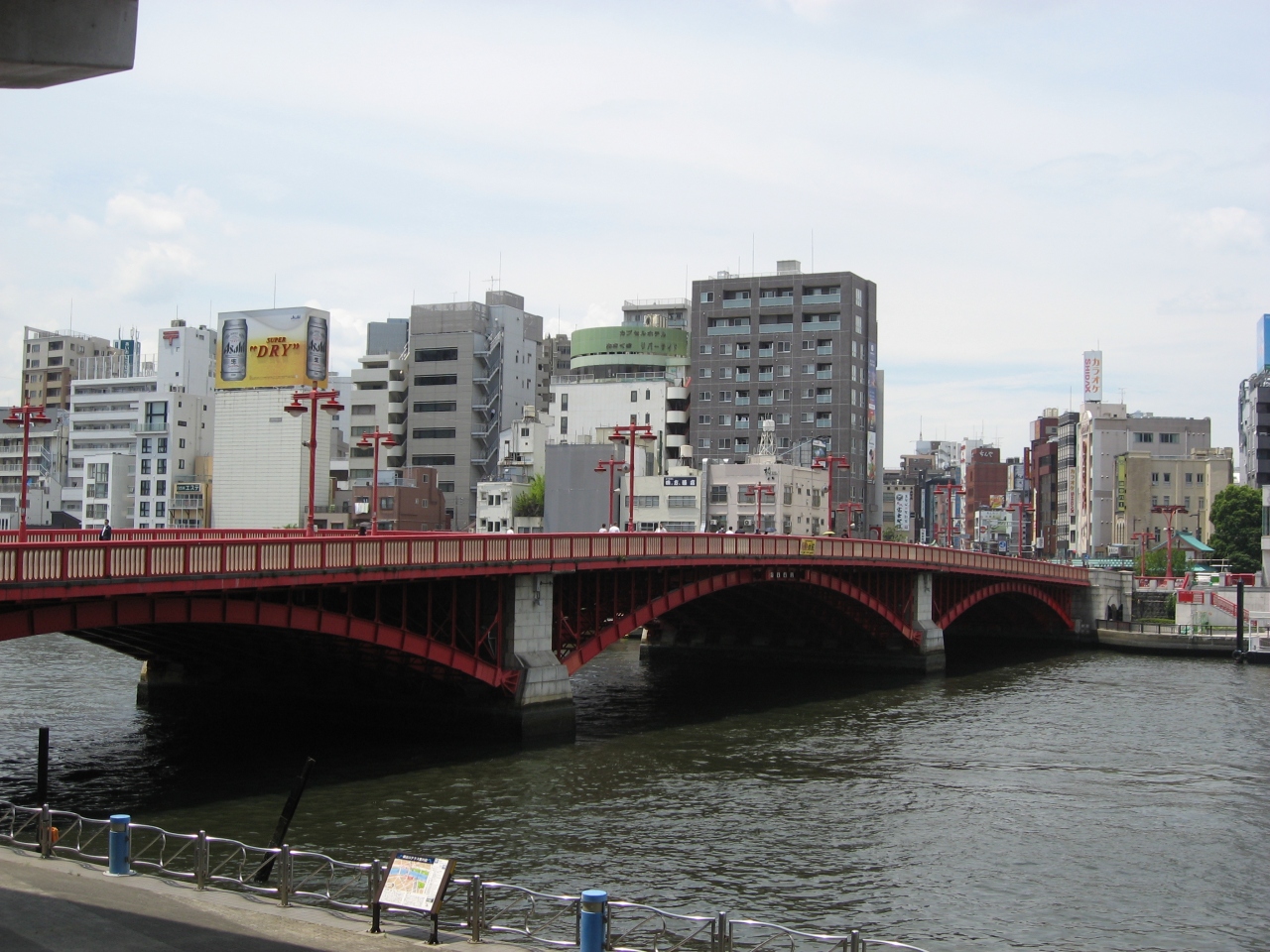 川越しにスカイツリーやアサヒビールのビルが良く見え写真を写している観光客が沢山いました。