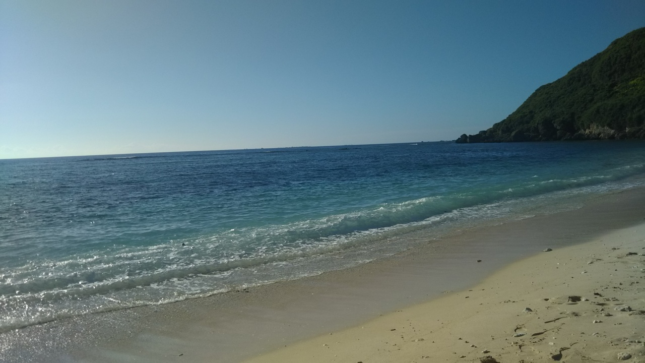 帰る日の朝、東平安名崎に立ち寄り、最後に魚を見に行こうと吉野海岸へ。入口にはライフジャケットなどを、安く貸してくれるお店もあります。波があって、沖の方にはサーファーが何人かいます。波があるのでシュノーケルは諦めて、新城海岸へ向かうことにしました。