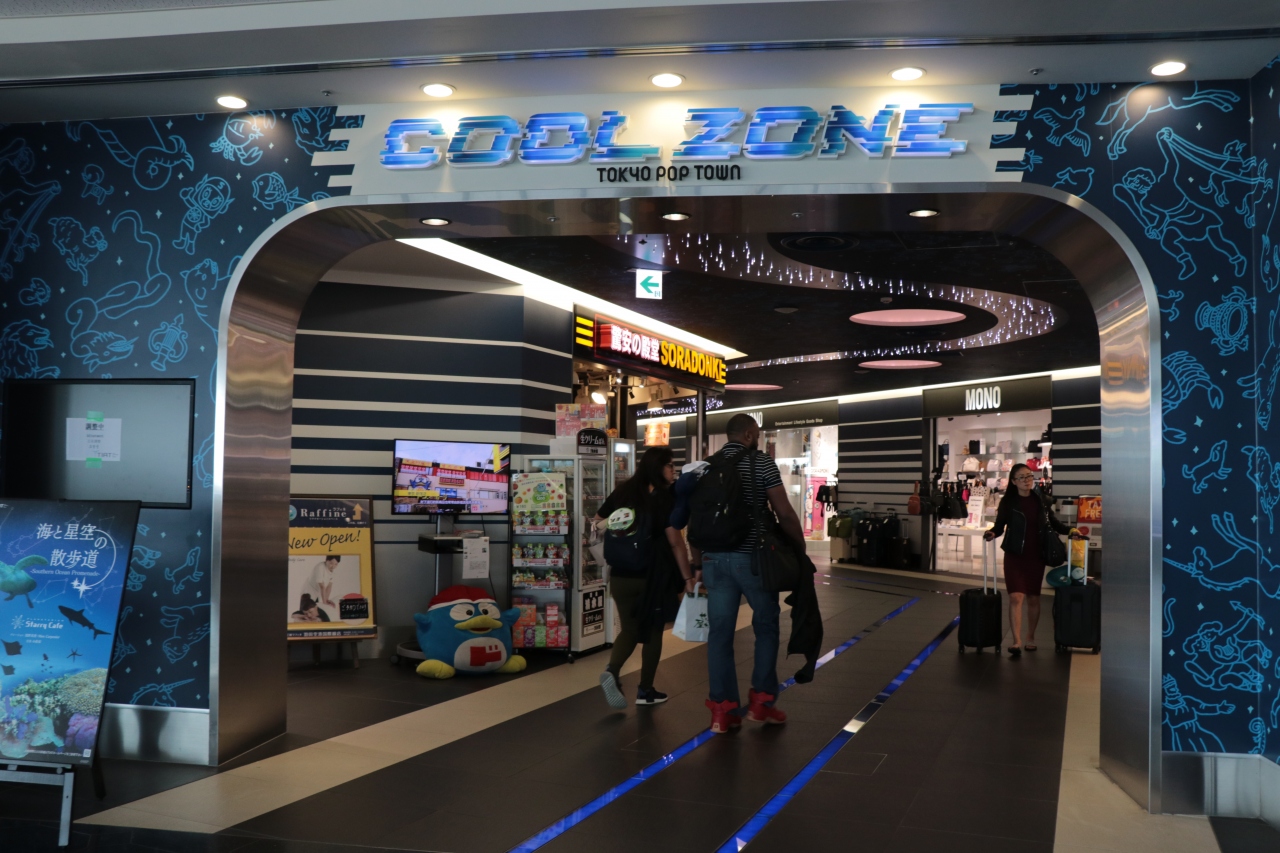 展望デッキに向かって左側がCOOL ZONE、右側がHOT ZONEと分かれており、左側には模型のカーレースが楽しめるお店や、キティちゃんなどのキャラクターグッズが並ぶお店が多く、フライトまでの空き時間でも子供は飽きることはなさそうです。