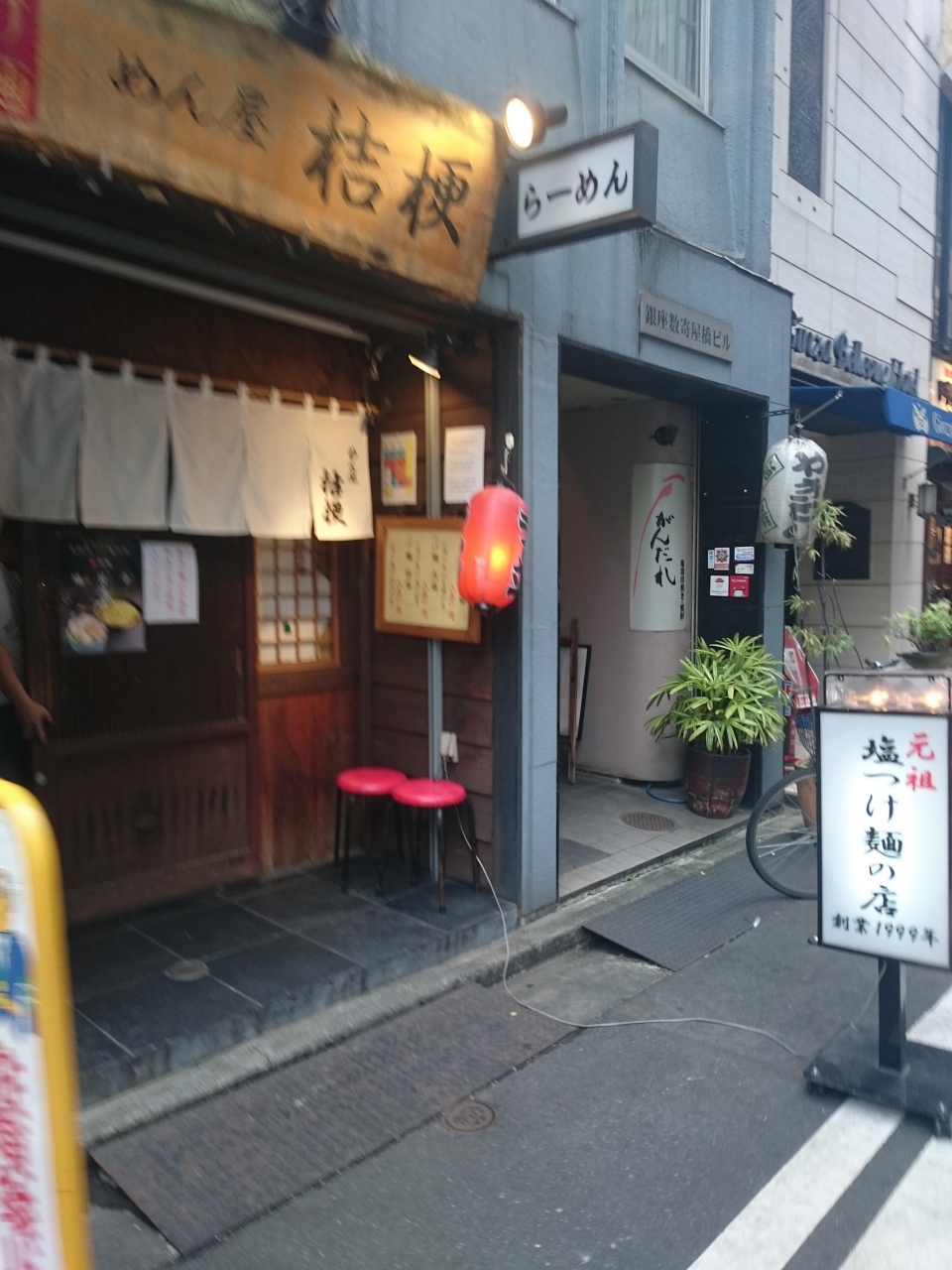 銀座の裏通りにあるラーメン屋です。塩つけ麺を押し出しています。つけ麺は並盛でも大盛でも特盛でも同価格ですが、特盛よりも更に多い麺ですと100円増しです。大盛で十分すぎる量です。こちらの店の麺はかなり強い黄色であるのが特徴です。