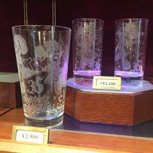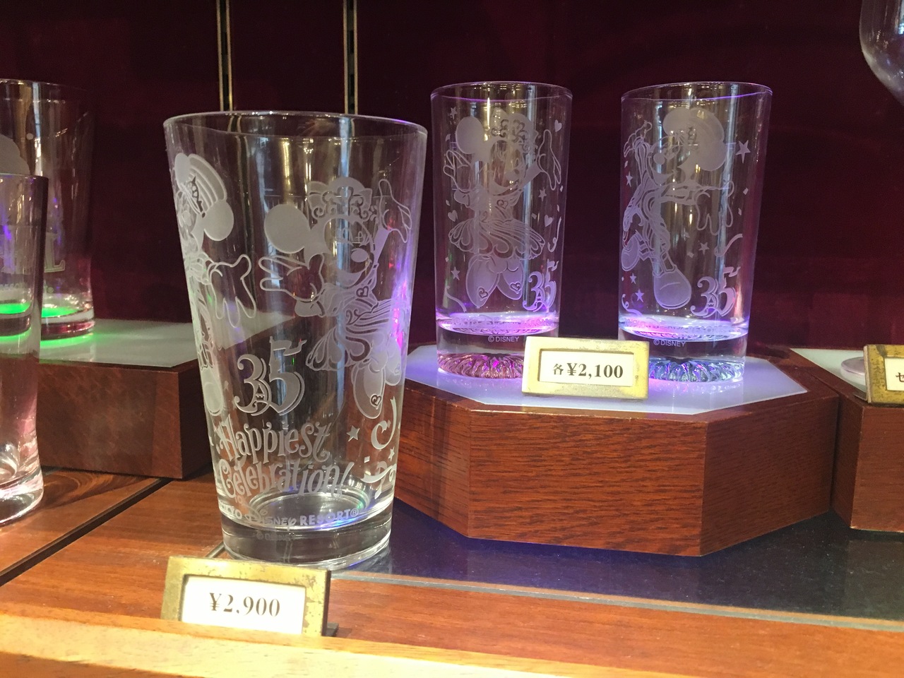 カリブの海賊近くにあるガラスを扱うショップです。好きなガラス製品を選び好きな文字を入れてもらうことができます。友人の誕生日プレゼントに利用しました。今だと35周年の限定デザインがとても多く出ているので、どれにしようか迷ってしまいました。ミニーちゃんが好きな友人なので35周年のロゴとミニーちゃんが描いてあるグラスにしました。裏に名前を掘ってもらえ、友人もびっくりしていました。