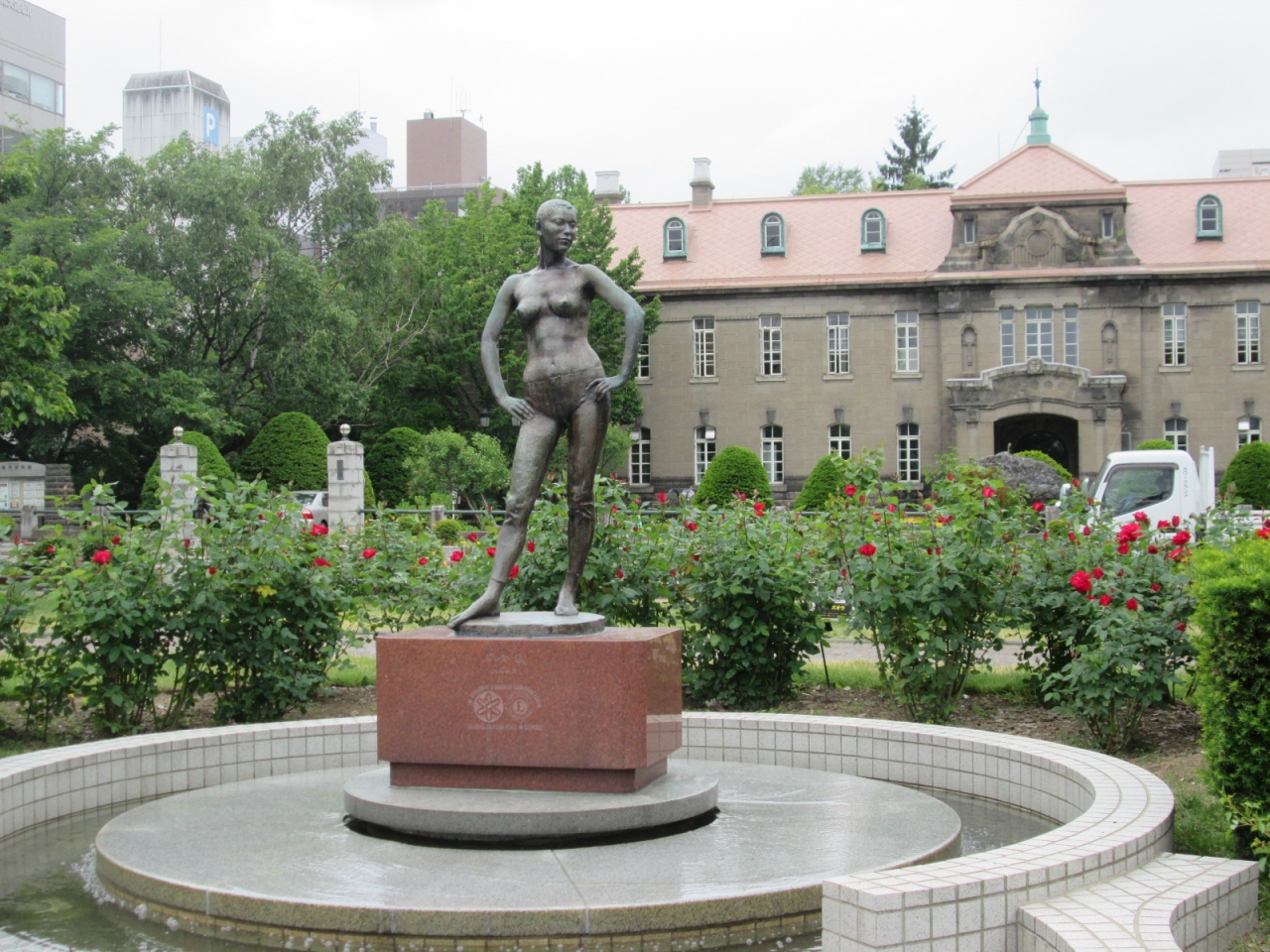 大通公園12丁目のサンクガーデン、通称バラ園の西端にある像で、昭和59年に札幌で行われた「東洋東南アジアライオンズフォーラム」を記念して建てられた女性像です。