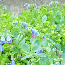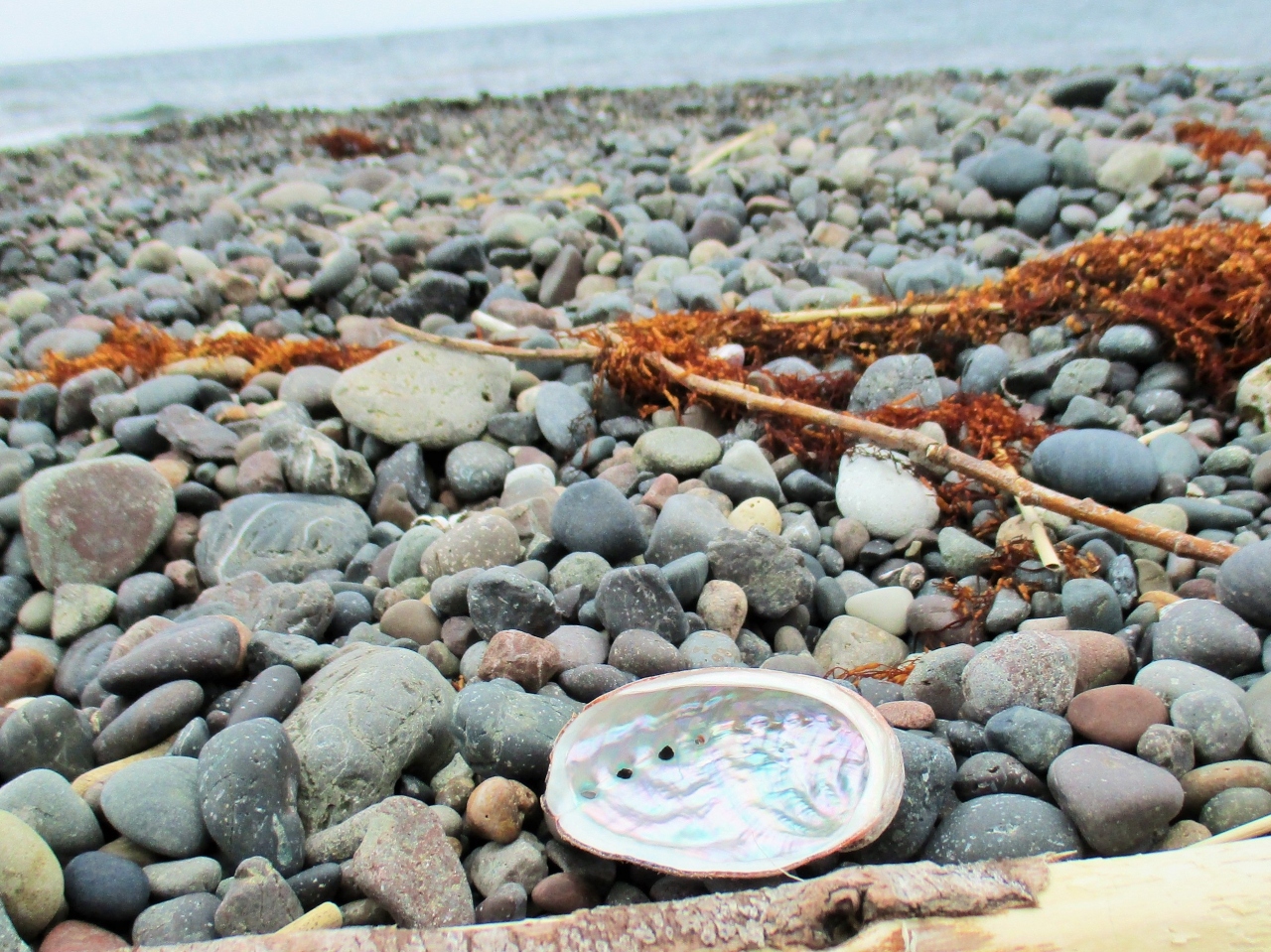 メノウ浜は小石がたくさん、花も咲いていて、誰もいなくて長閑な雰囲気。