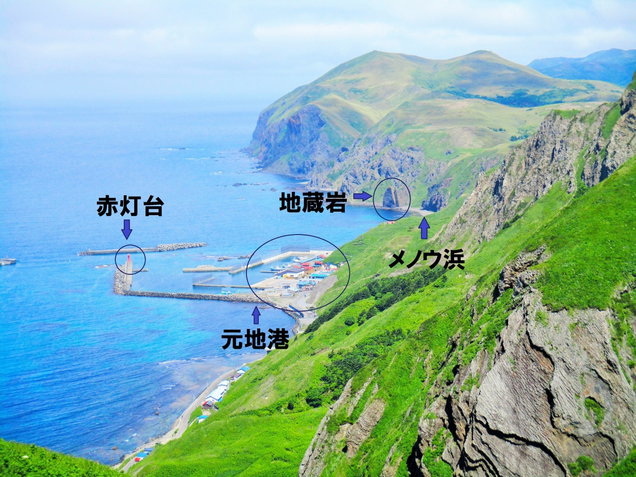 桃岩展望台から遠くを見下ろすと、元地港があります。