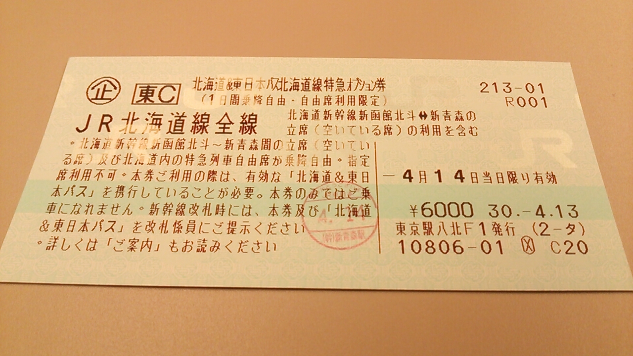 その切符とは「北海道&東日本パス北海道特急オプション券」という切符で、北海道&東日本パスを利用する際、北海道新幹線の普通車の空席とJR北海道の特急列車の自由席が1日6000円で利用し放題という内容です。ちなみにこの切符、一般の方が購入可能な切符の中で北海道新幹線が乗り放題となる唯一の切符です。