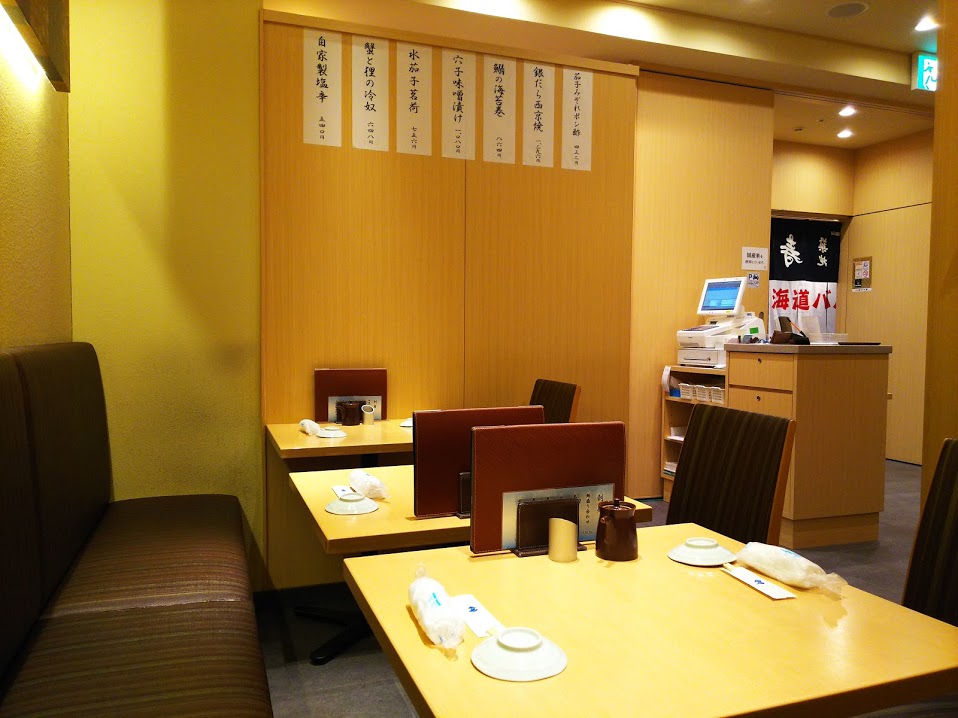 大丸のお弁当などが並ぶエリアのすぐそば、お菓子ランドの奥なのでお買いものついでや東京駅で時間があるときに使えます。平日5時過ぎでほぼ満席。
