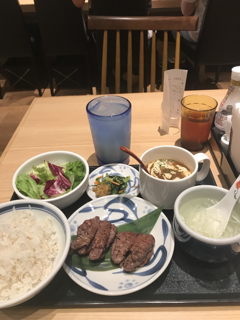 牛タンねぎしの東急ハンズ前店です。地下にあるお店は狭いので、すぐに満席になります。グレープフルーツサワーはグラスになみなみ注いでくれてるので嬉しいですね。場所がらアルコールを頼んでいるのは、一人だけでしたが。