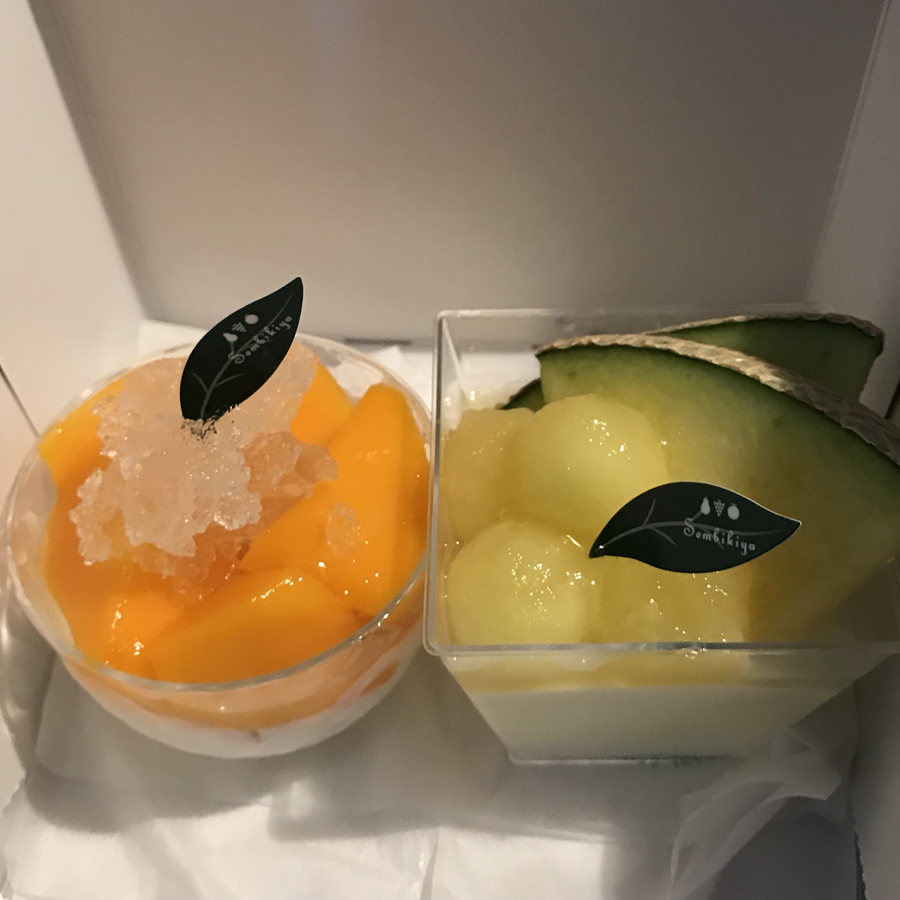メロンムース 972円と宮崎マンゴー杏仁 756円を。