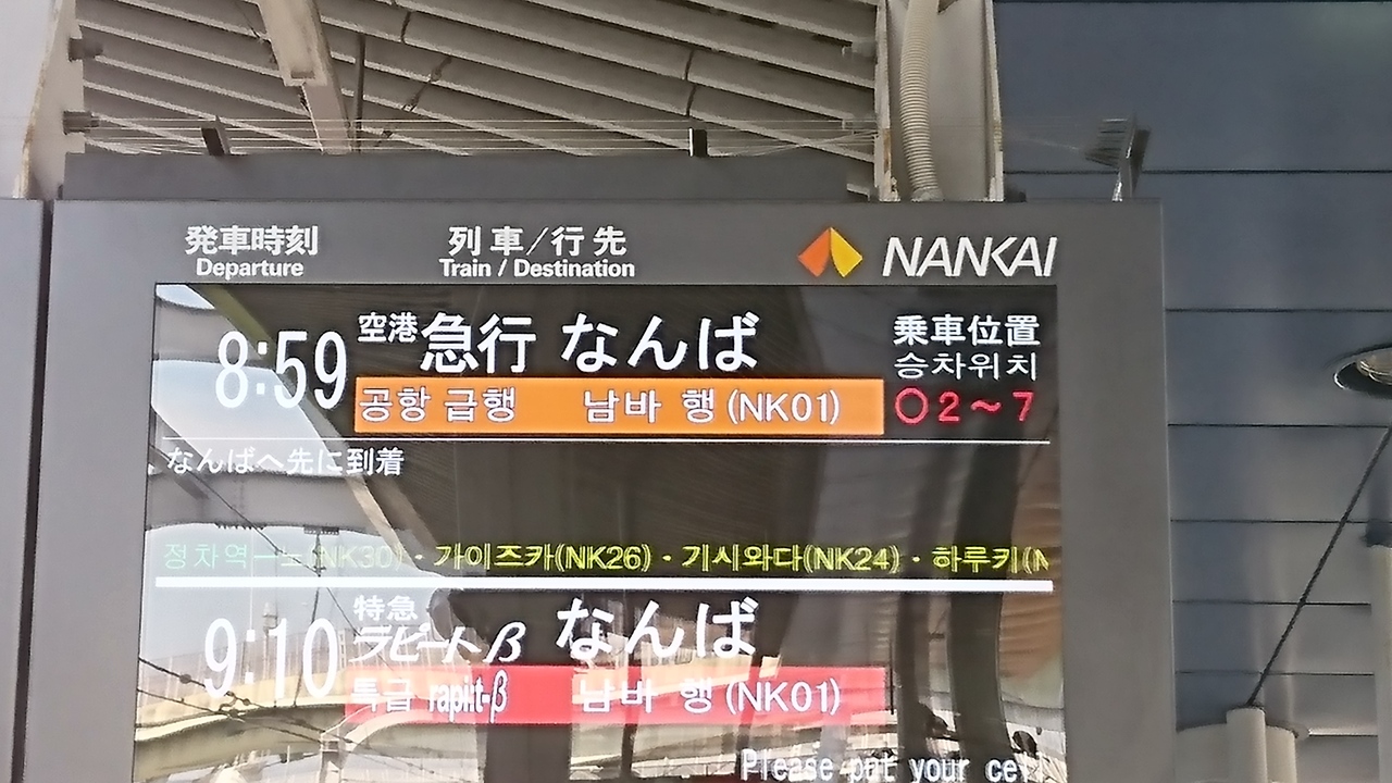 大阪市内から関空へ向かう際のアクセスは、JRはるか、JR関空快速、南海ラピート、南海空港急行、リムジンバス、高速船、乗り合いタクシーと様々ありますが、安くて確実なのが南海の空港急行。特別料金不要で、難波~関西空港まで45分、920円。梅田からの場合、プラス地下鉄230円となります。ちなみに大阪から関空快速利用の場合、1時間6分、1190円でほぼ互角ですが、大阪からの乗車の場合、結構、混雑しているので座れないことも多いので、座りたいなら南海の空港急行の方が可能性が高いです。なお、空港急行は、和歌山方面行きの急行は停まらない春木にも停車します。