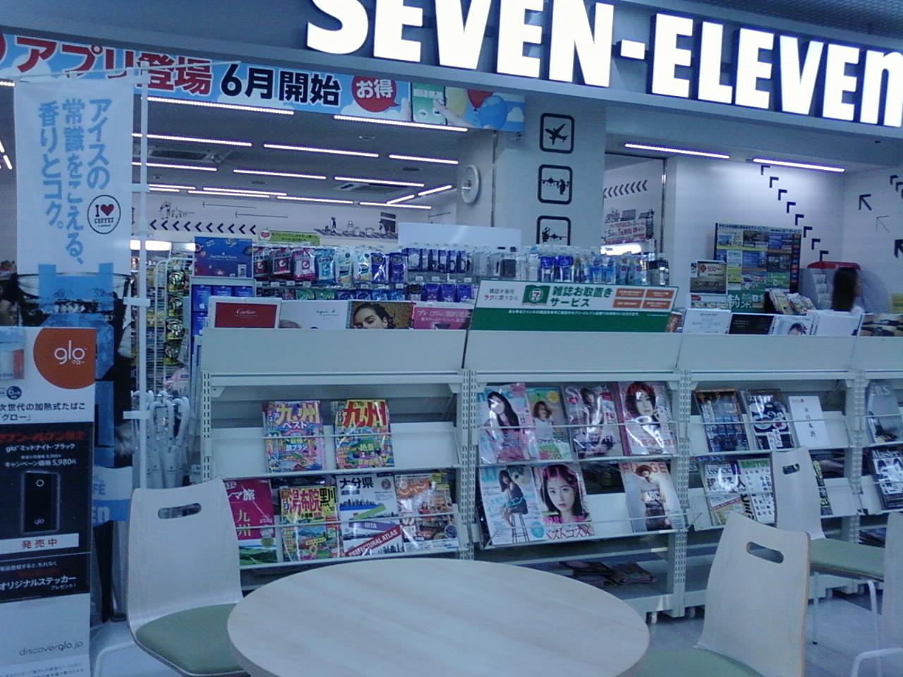 ここのセブンイレブンは大分空港の一階にあります。今やどこの空港にもコンビニは必ず見かけるようになりましたが、ここもそのひとつですね。出発前も到着後も飲み物を買ったり、雑誌を買ったりと便利です。またここはお店のすぐ脇にテラス席があって、ゆったりと過ごせるのが良いですね。