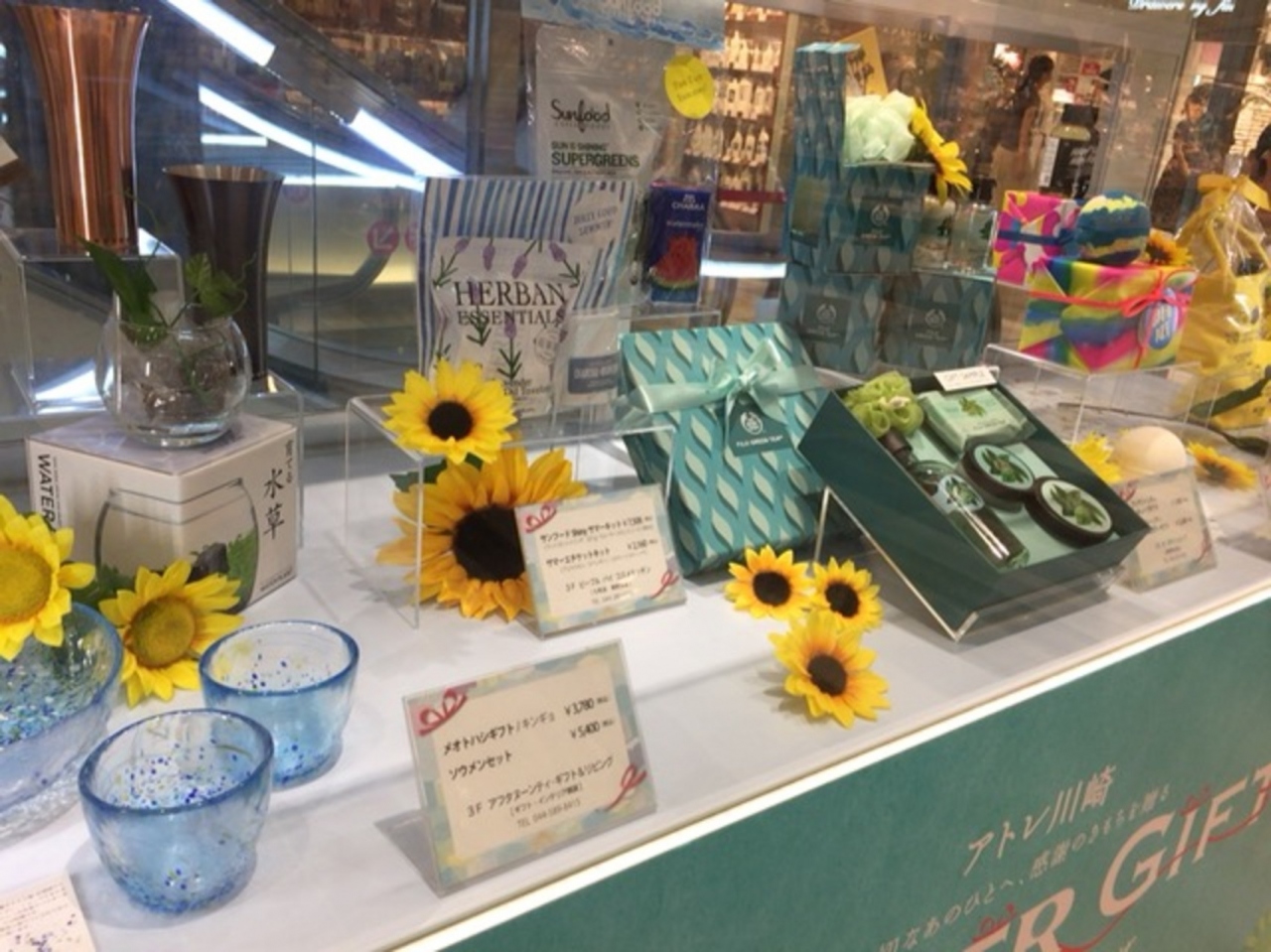 JR川崎駅改札を出てすぐに広がる大きなショッピングモールです。地下1階から8階まであり、売り場面積が広くて 全部見るのは相当時間がかかります。3階インフォメーション前あたりにあるショーケースには 夏のギフトが飾ってあり、参考にさせてもらいました。