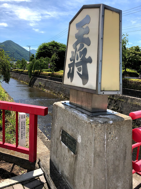 川沿いに一本道で、道の駅に向かうお散歩がてら順番に橋を見ながら歩いて行きました。橋には大きな駒が両岸にあって、天童駅側から王将から始まって竜王まであります。観光客はバス移動しているようで誰ともすれ違いませんでしたのでゆっくりお散歩できました。