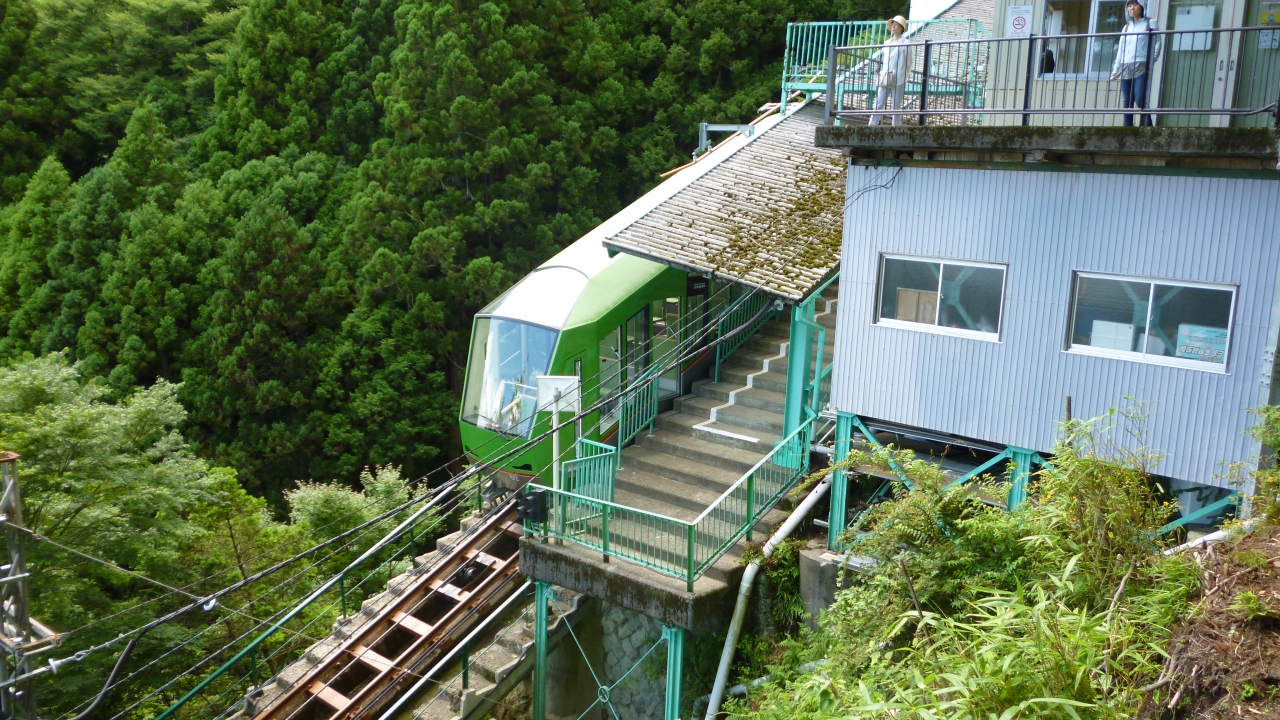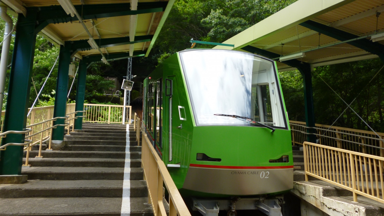 阿夫利神社下社参拝のため利用しました。大山ケーブル駅から阿夫利神社駅間を結ぶケーブルカーで、大山寺駅で途中下車も可能です。2台のケーブルカーはつるべ式で連結されているようで、大山寺駅の乗降は同じ車両なら同じホームで乗り降りする事になりますので注意が必要です。アナウンスはあります。2016年にGOOD DESIGNE AWARDを受賞したようです。