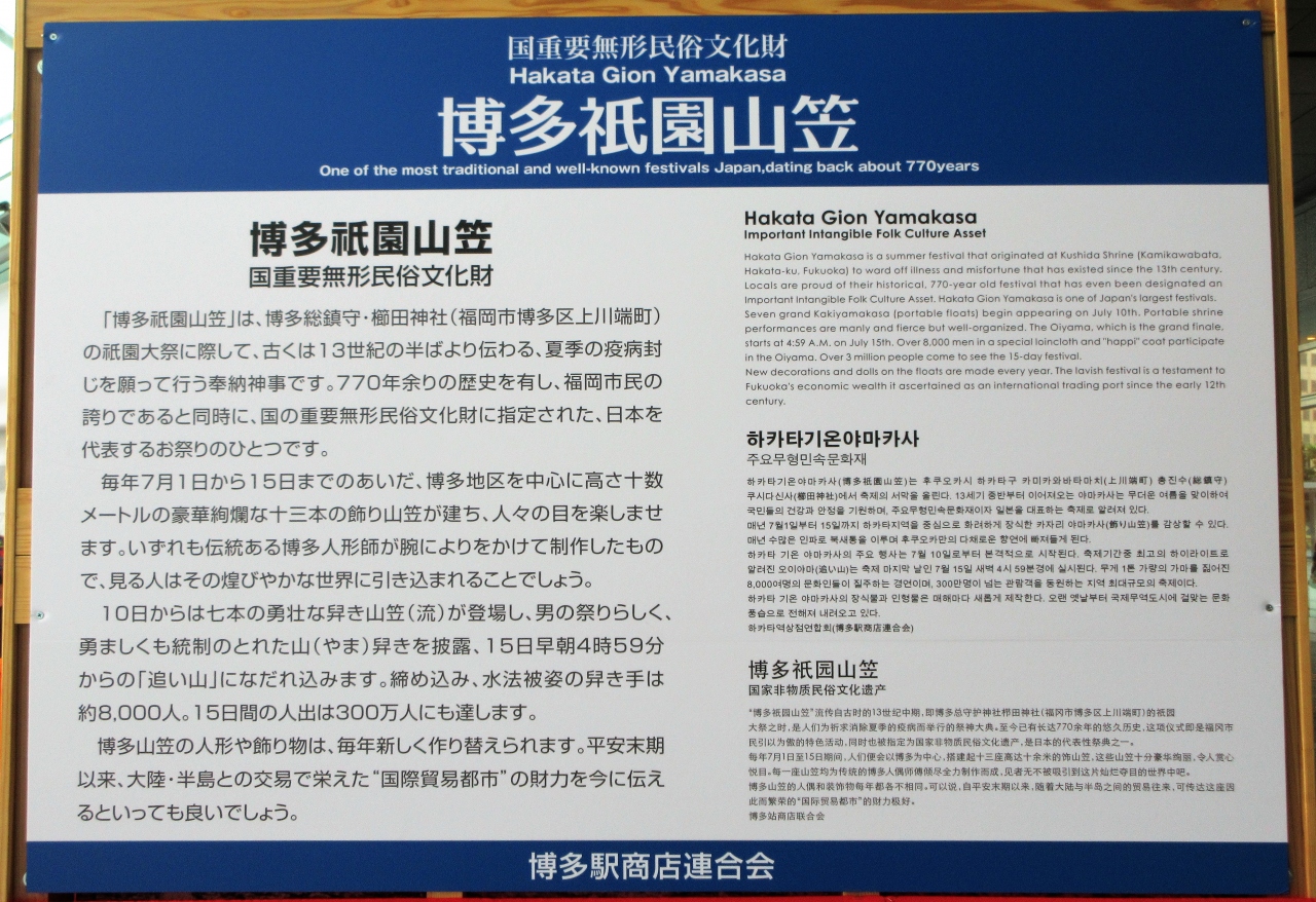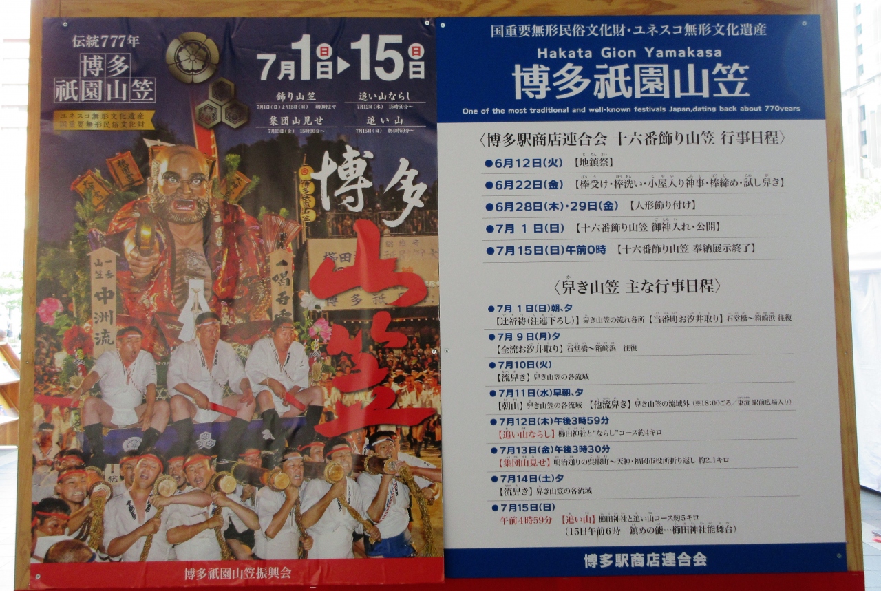 7月1日から15日までは山笠が飾ってあったり、山笠を担いで走り回ったりで熱気があります。