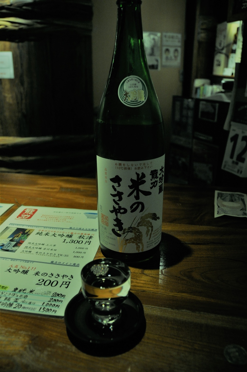 姫路旅行の出発前日、何か面白いところないかなと思ってネットで探して見つけたのがここ。姫路の蔵元といえば龍力。酒蔵そのものは町の中心部にないので簡単には行けない。その点、ここは姫路駅の地下街「グランフェスタ2番街」にあって、有料試飲出来るので行ってみた。1杯200円で、3杯500円だったので、3杯にした。銘柄は事前の予習では「米のささやき」というのが評判よさそうだったので、まず「米のささやき」を注文すると、やや大きめの猪口になみなみと注いでくれた。飲んだ感想は、近年流行のフルーティな味わいでいきなり絶品に出会った。なお、ここはカウンターの立ち飲みであり、隣の方がフレンドリーな方で、いろいろと話しているとオススメの銘柄も教えてくれて、夕食前にちょっと・・・・・のつもりが、結局5杯飲んでしまった。
