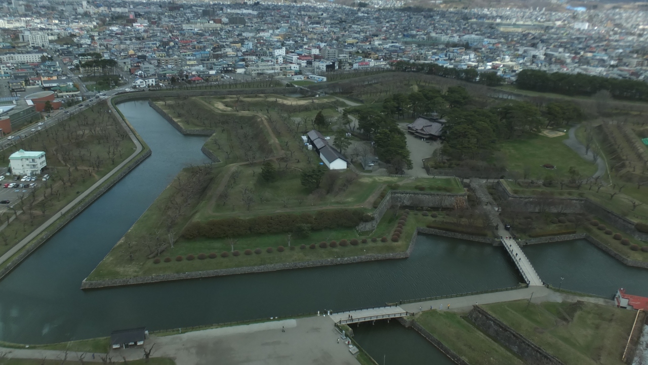 函館に行った際に、五稜郭いも足を運んだのですが、五稜郭タワーに上って五稜郭タワーの展望室から五稜郭を見下ろしたときは、本当に美しい西洋的な城郭だと思いました。また今度は、桜の季節に行ってみたいと思います、