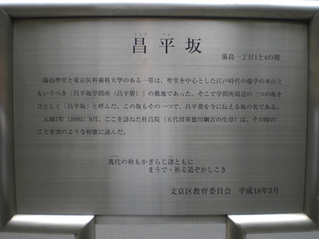 昌平坂の中間付近に、教育委員会の解説板が立てられています。