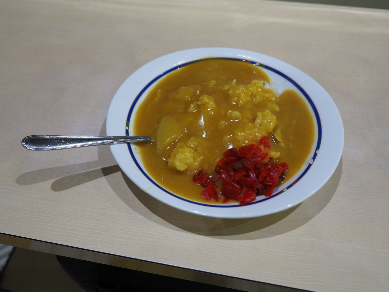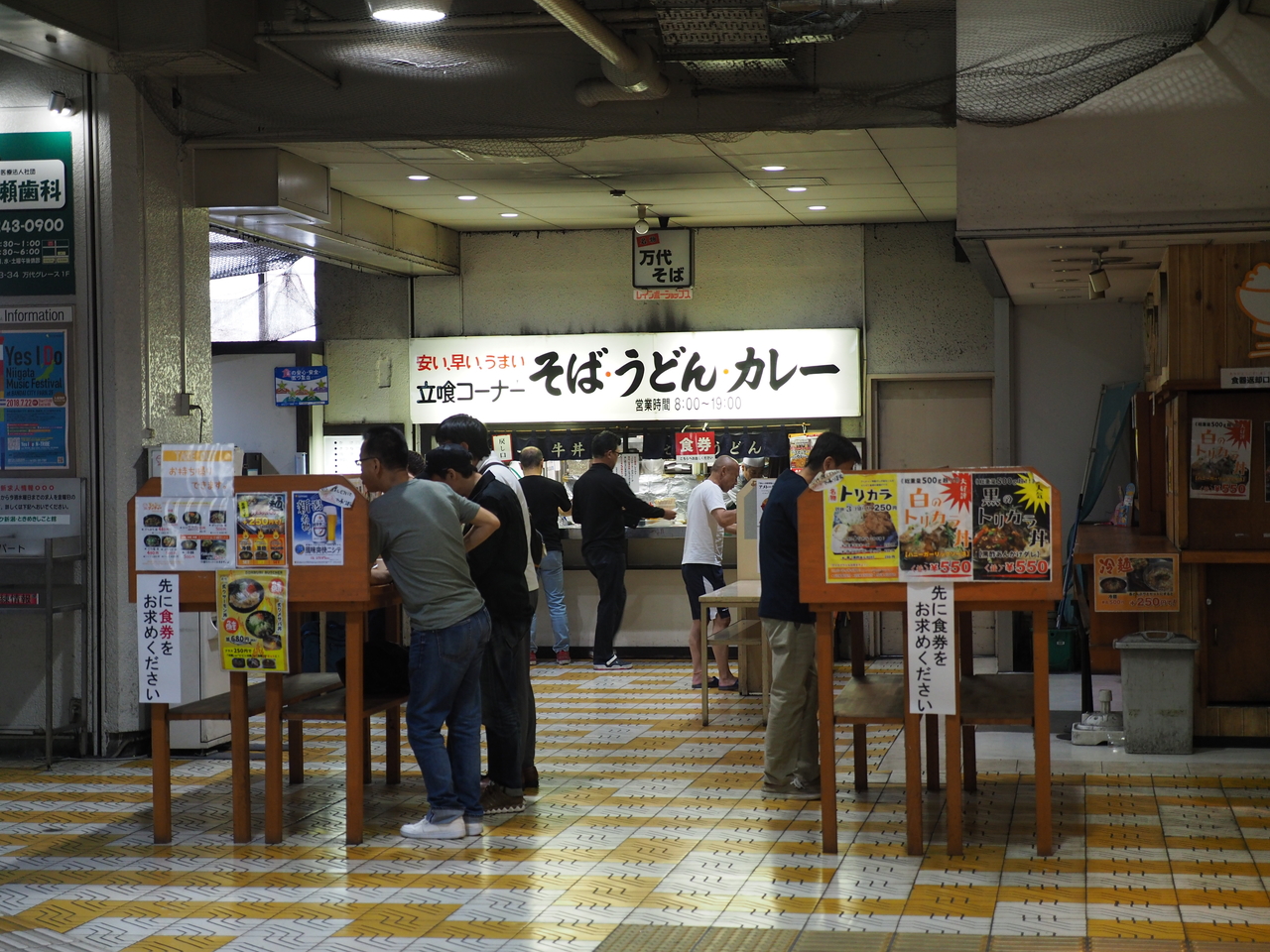 お店は8時開店ということで朝ごはんに訪れました。そば屋ですが、多くのお客さんが朝からカレーを注文しています。黄色でとろみも強めなのでお家の味かなと思いきや、スパイスが意外と効いていてとても美味しいです。立ち食いスタイルでエアコンもありませんので、夏場は汗をかきかきカレーを食べる事になりますが、この雰囲気も含めて新潟名物です。