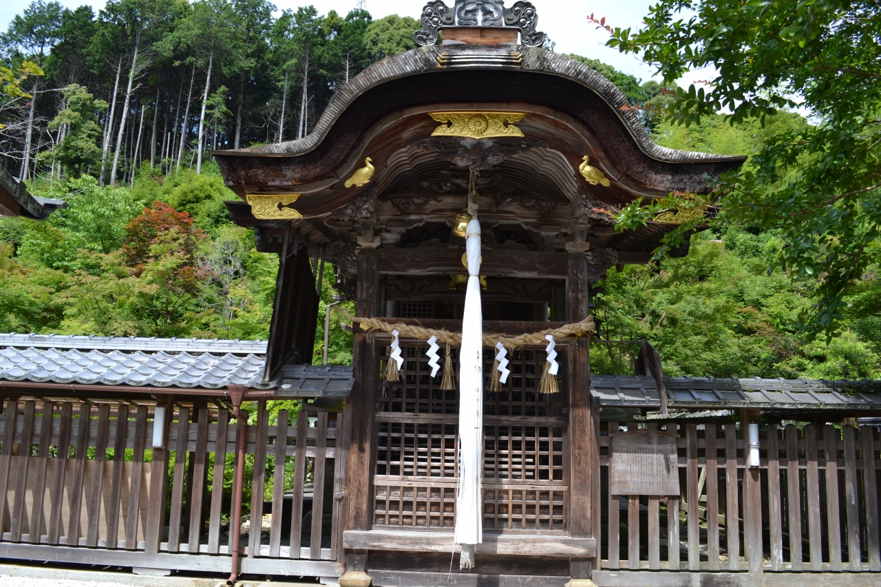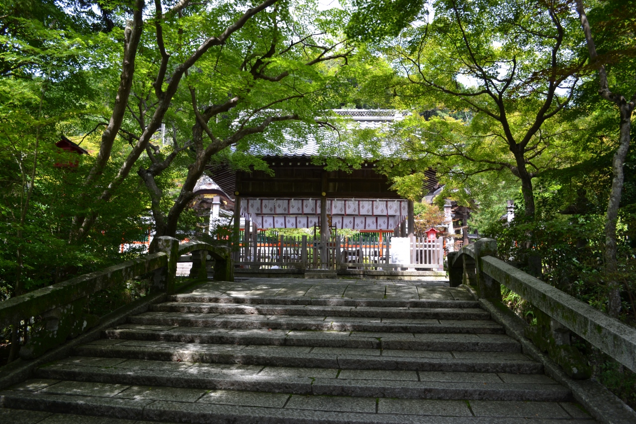 6月下旬に訪問しました。駐車場はあります。参道の両側には多くのモミジが植えてあり、丁度青もみじが綺麗でした。境内には、同じような建築様式の本殿の鍬山宮と八幡宮が並んでいます。秋は紅葉がとても綺麗だと思います。