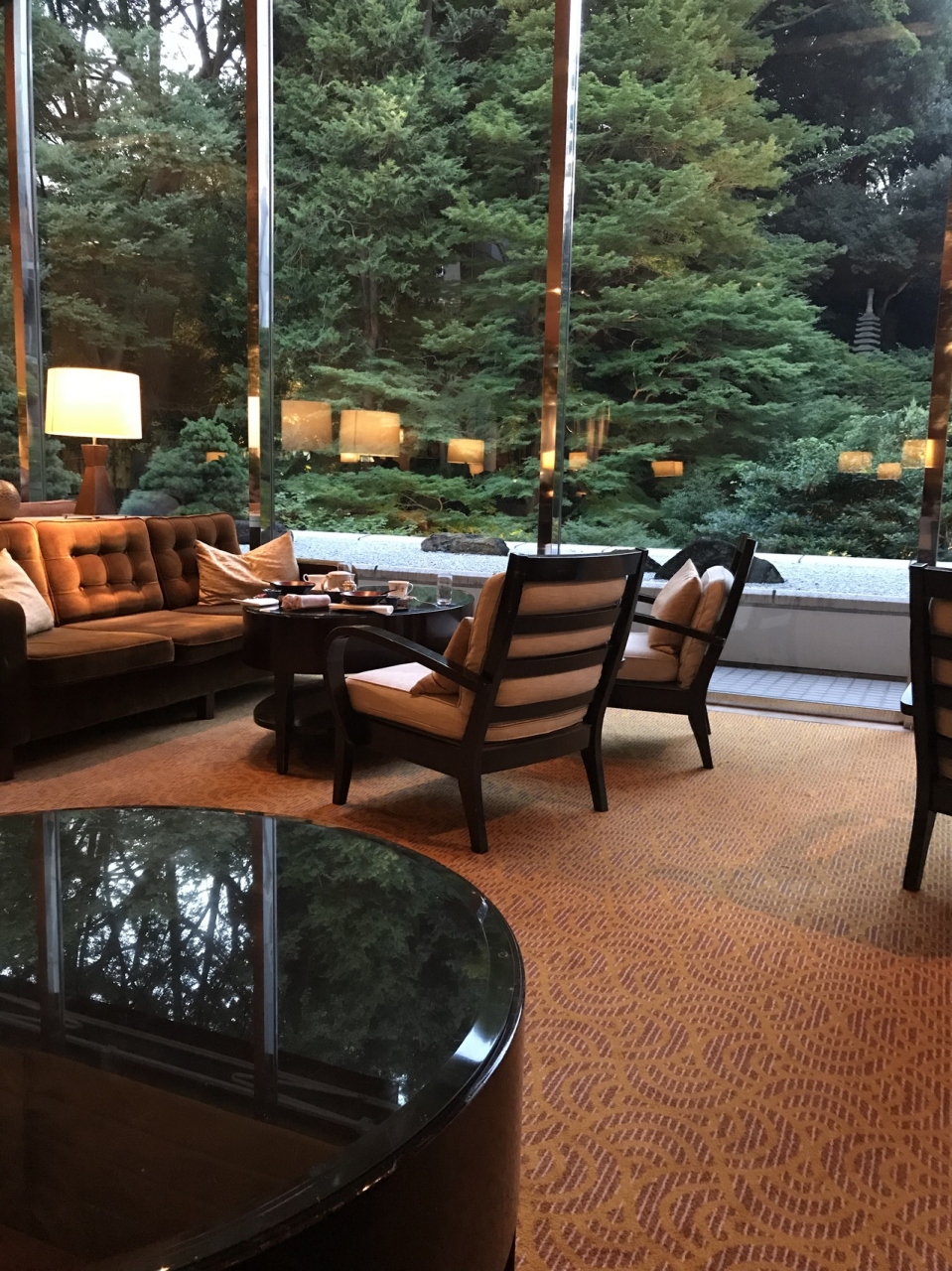 静かで落ち着けるラウンジです。テーブル同士も離れていてソファ席なのでゆっくり過ごせます。目の前には庭園が広がっていて、ラウンジ内は噴水もあり涼しい気分になれます。和のスイーツも揃っていて食事も充実しています。