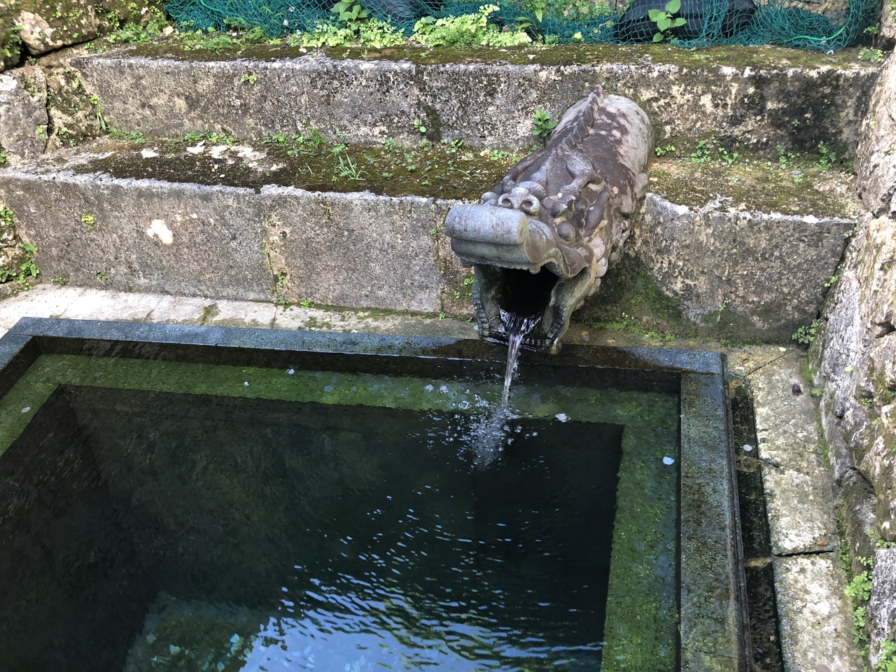 ちょっとカバさんっぽいような、とてユーモラスなお顔の竜が水をはいていました。