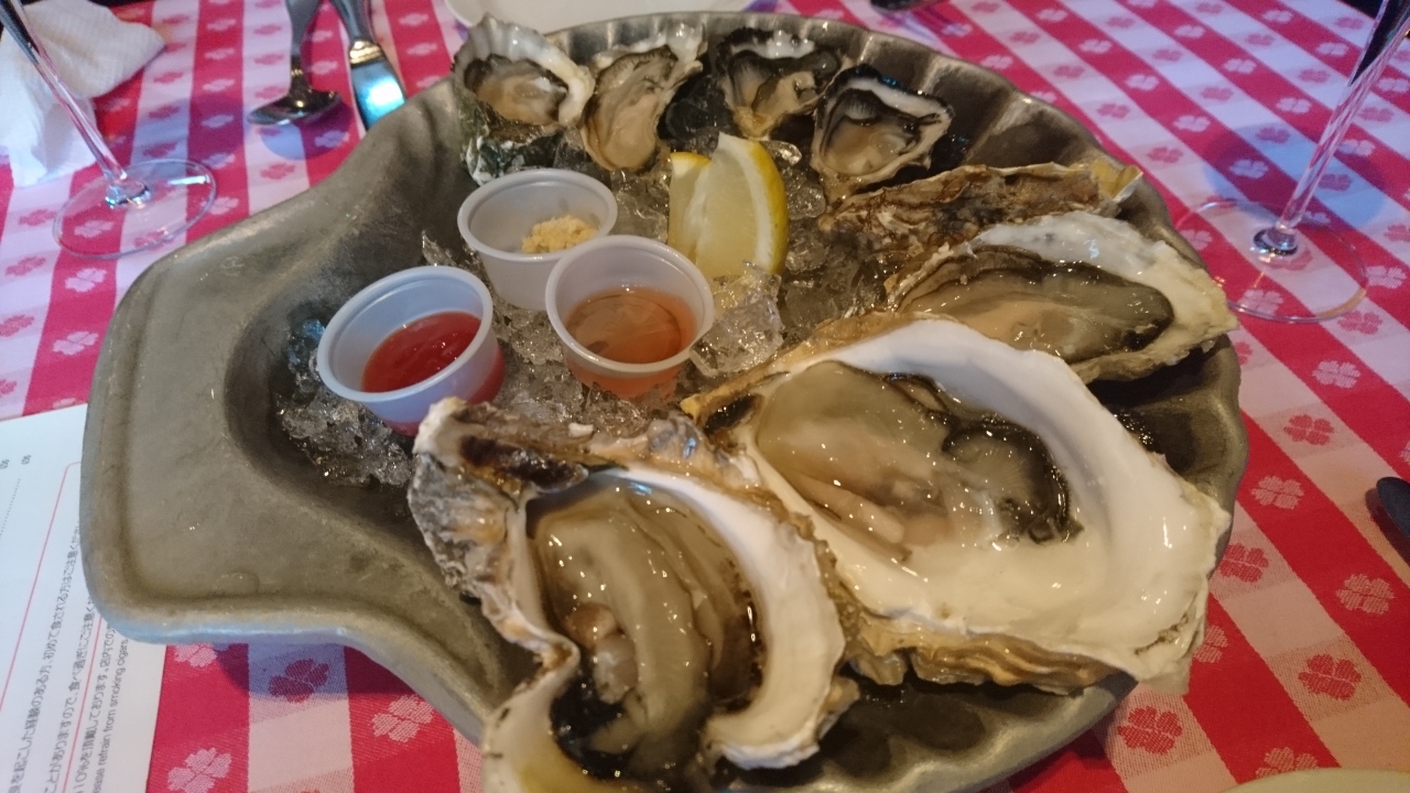 生牡蠣をメインに、パスタやシチュー等頼みましたが、やはり生牡蠣が一番。二人だったので、最初に8PC盛り合わせを頼み(12PCもありますが、3PC4種類となるため)、その後単品で盛り合わせに入っていなかった種類を頼みました。種類によって味が全く違うので、いろいろ試して好みの牡蠣を見つけるのが楽しいです。