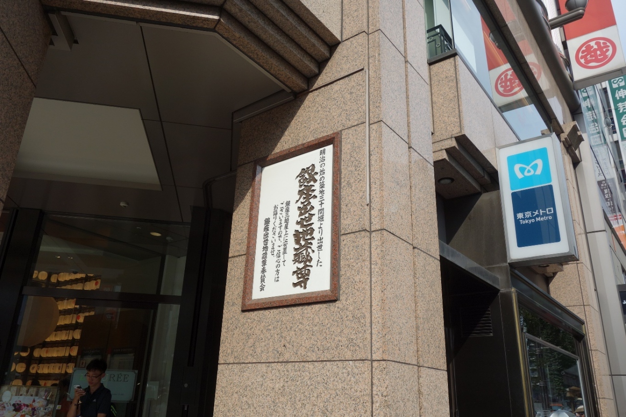 銀座の中心地にある老舗デパート三越の屋上にお地蔵さまが置かれています。デパートの入り口付近に案内が有ったので屋上まで上がってみると六角堂内に安置されていました。中央区の区民有形民俗文化財に登録されているそうです。