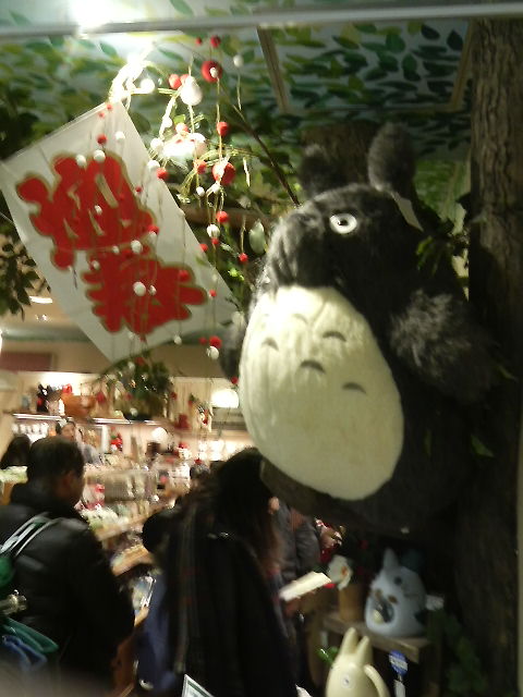 店内に木のオブジェがあったり天井が森の模様だったりと「となりのトトロ」っぽい雰囲気が特徴的なお店なのですが、この時は正月ということでトトロの横に正月飾りや「迎春」と書かれた凧が添えてあったりと新年らしい感じが良かったです。