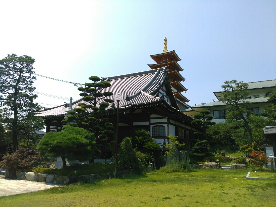 寺院が集まる寺町にあり、近くに行くと朱色の五重の塔が非常に印象的です。
