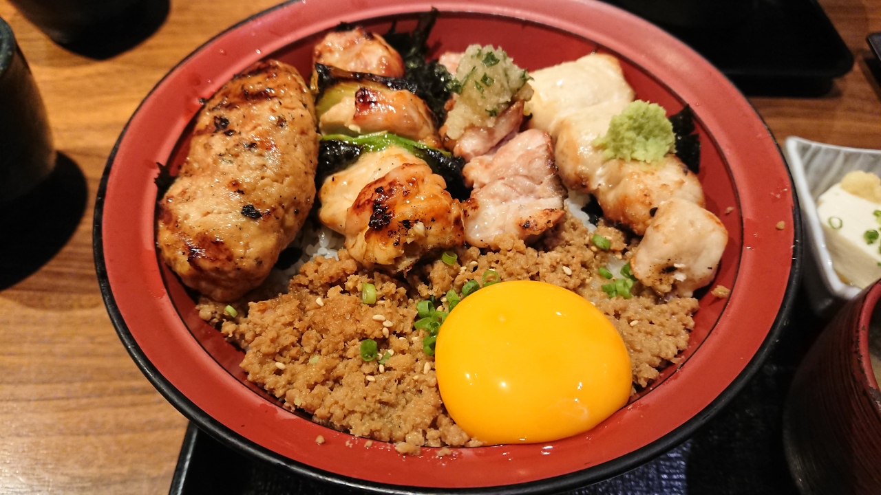 ねぎま、つくね、ささみ、せせり、鶏そぼろ、卵黄が乗っていて、鶏のいろんな味がひとつの丼で楽しめてとても大満足でした!
