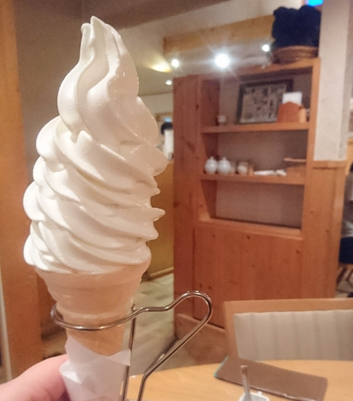 祝日の18時過ぎに2名で来店。5分程度待って席に案内して頂いた。レジ脇のショーケースにプリンやチーズが売っていた。ソフトクリームも店内食べてもお持ち帰りどちらも可。ミルクが濃厚。店内は木目調の四角いテーブルや楕円形のテーブ。ガーリックステーキはお肉はミディアムレア。人参が大きめのだったが柔らかくて甘かった。