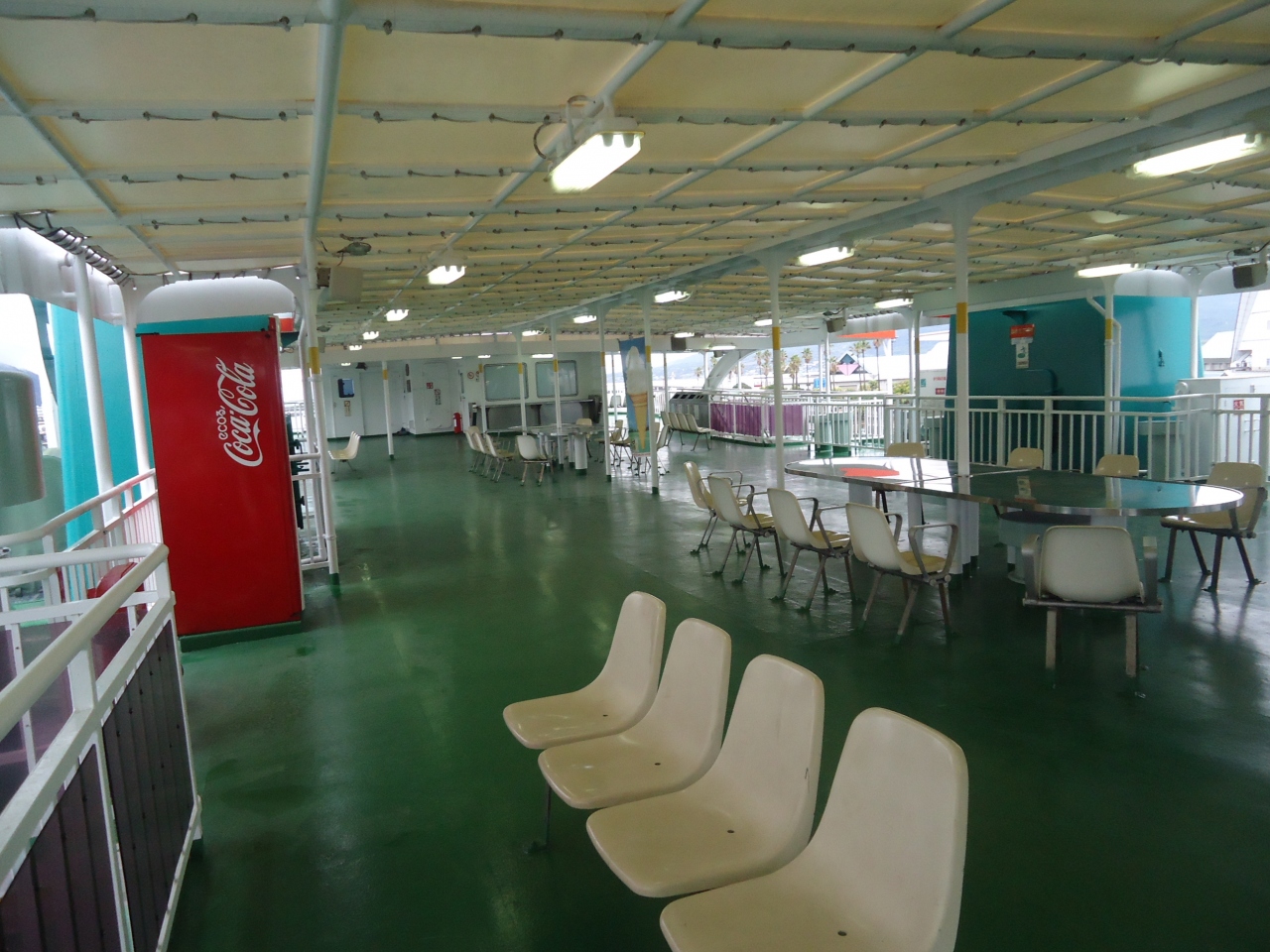 びっくりしたのは24時間運航されているということです。都会の交通機関だって深夜は営業していないのにここのフェリーは夜中でも1時間に1便運航しています。日中は15分に1便ほど、所要時間も15分ほどなのでちょっと向こうの島まで行ってくるという感覚で乗ることが出来ます。フェリーの中には売店もあり、名物のうどんも食べたりしているとあっという間に到着でした。