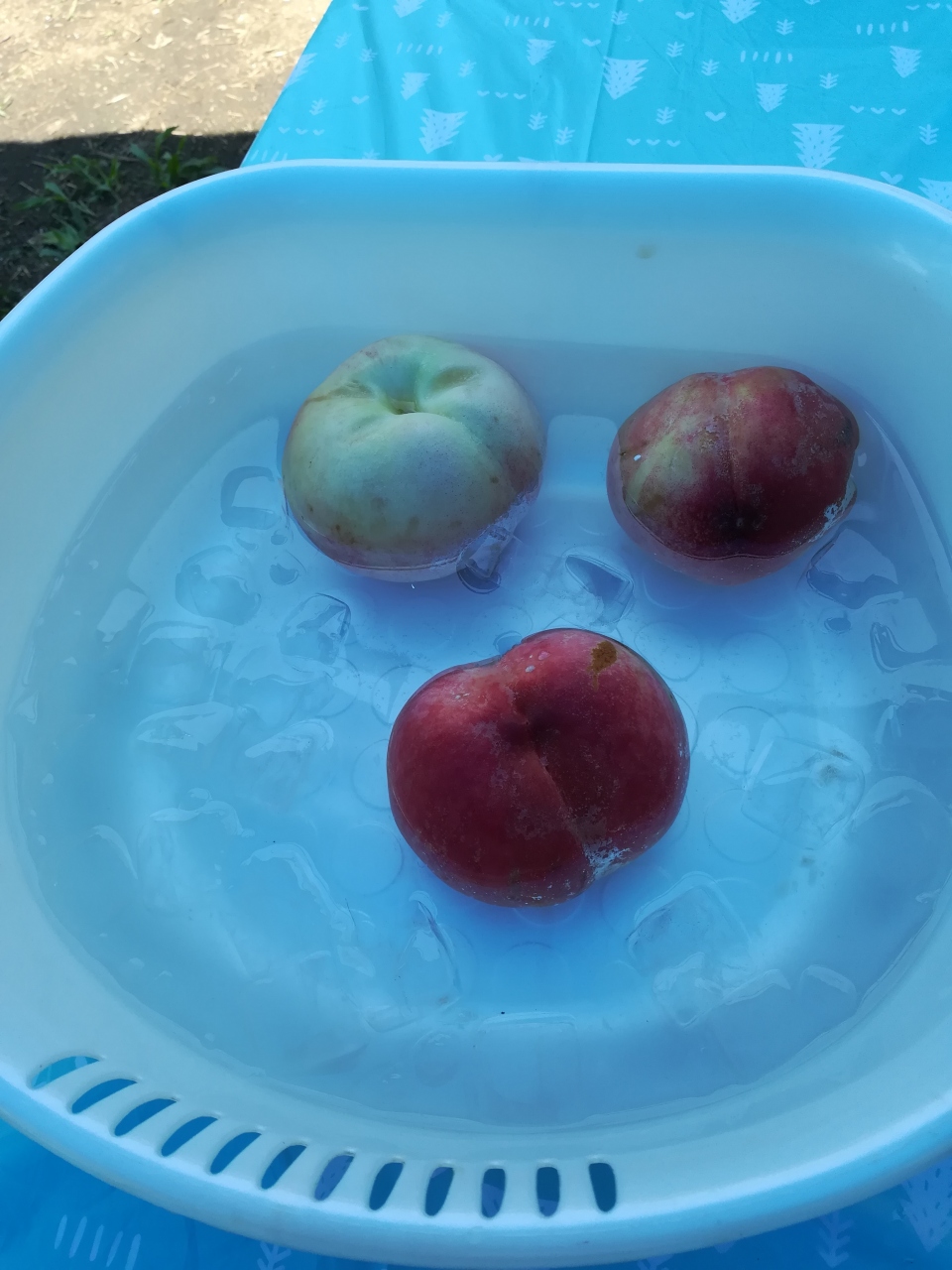 今年は桃を冷やす為の氷を入れた洗面器を用意して下さっていましたが、冷える前に食べてしまってなかなか冷やせませんでした。