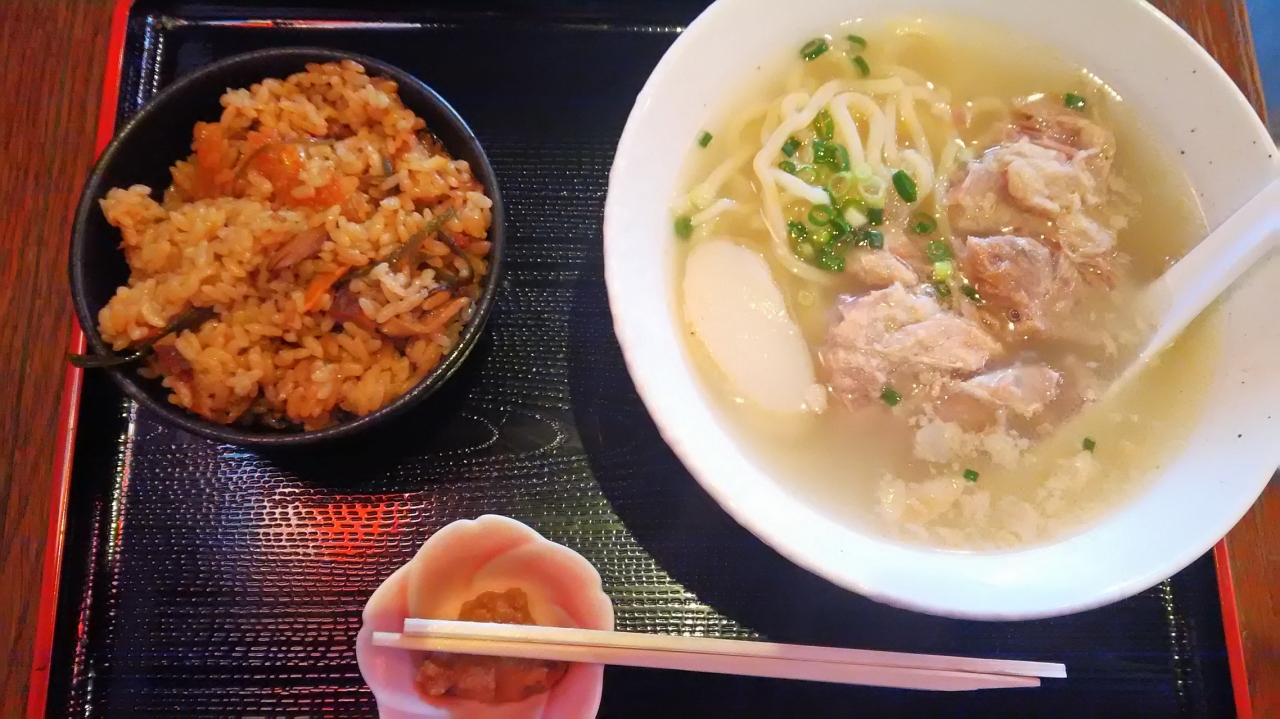 週末のお昼時に家族で行きました。店内にはカウンター席とテーブル席が3つあり、カウンター席はすぐに案内されていましたが、テーブル席は家族連れが多く、20分ほど待って席に着きました。家族で、「ソーキそば定食(ご飯はじゅーじーに変更)」「ラフテー定食」「麺飯定食(沖縄そばハーフ+ラフテー丼)をシェアしていただきました。家族で沖縄旅行に行って以来、大好きになった沖縄料理を久しぶりに食べられ、どれもとっても美味しく、大満足のランチとなりました。子ども連れでも入りやすかったので、また行きたいと思います。子どもたちもじゅーしーも、沖縄そばも、ラフテーもどれも美味しいとよく食べました。