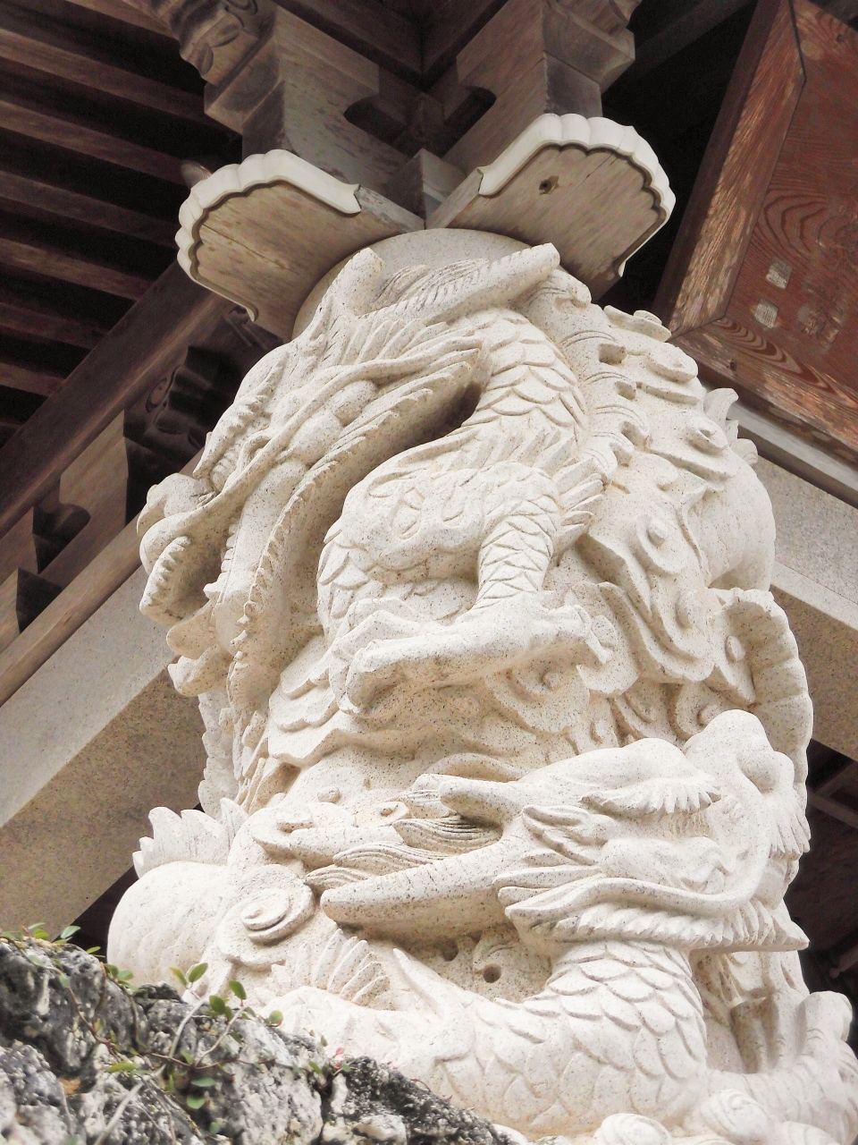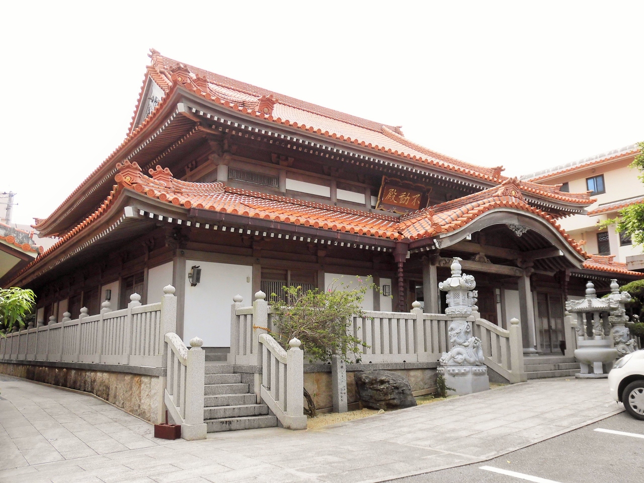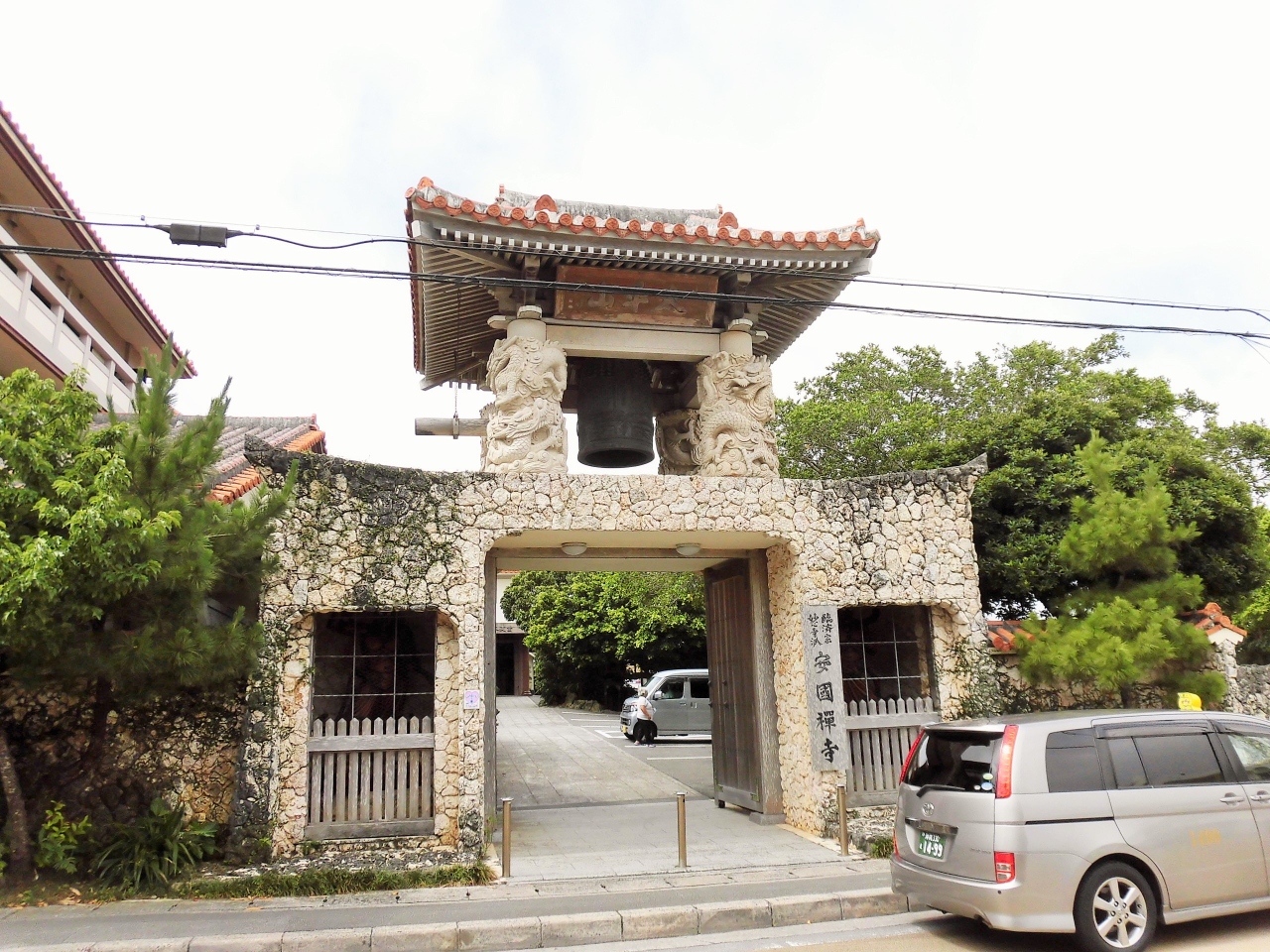 玉陵のすぐ近く、県立首里高校の前にあります。臨済宗妙心寺派の寺院だそうです。このお寺の見所は、道路沿いにある立派な造りの石門です。石門の上には釣鐘があります。左右には仁王像もあります。石門の形も変わっていますし、龍の彫刻も見ごたえがありますので、ぜひ首里城の帰りに寄られることをお勧めします。