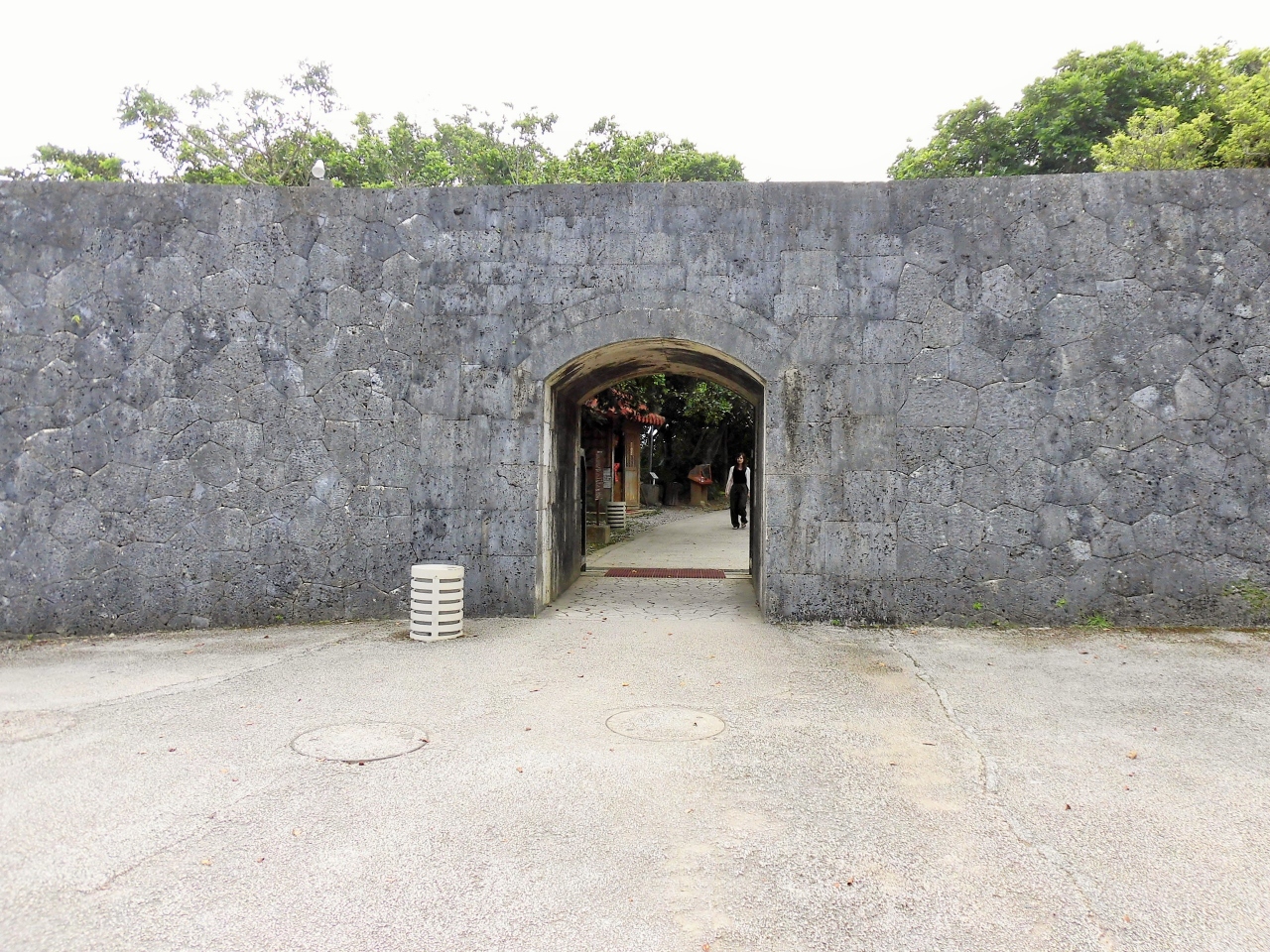 守礼門を通り過ぎたら、直ぐに右へ曲がって約30m先を左に進むと、琉球大学の校舎があった記念碑があり、その先に木曳門があります。元々は首里城の修復工事のときにのみ、資材の搬入口として使用された門ですが、現在は車椅子の出入口として使われています。この門は無料エリアですので、外側からだけでなく内側からでも行けます。団体客がいない静かなエリアでした。