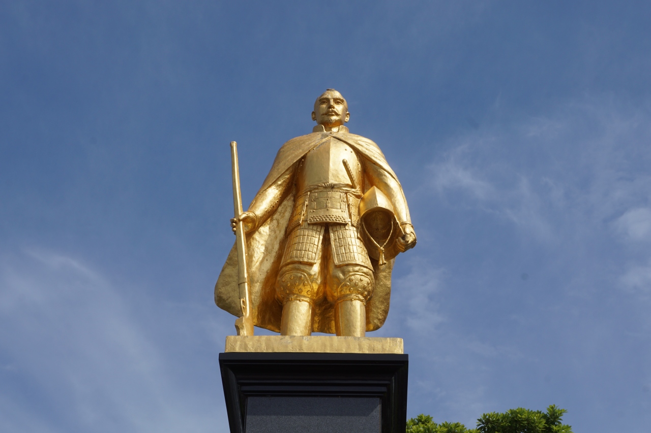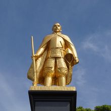 黄金の織田信長公像は、岐阜駅北側の信長ゆめ広場奥。文字通り、金色に輝く像なので、すぐにそれと分かります。