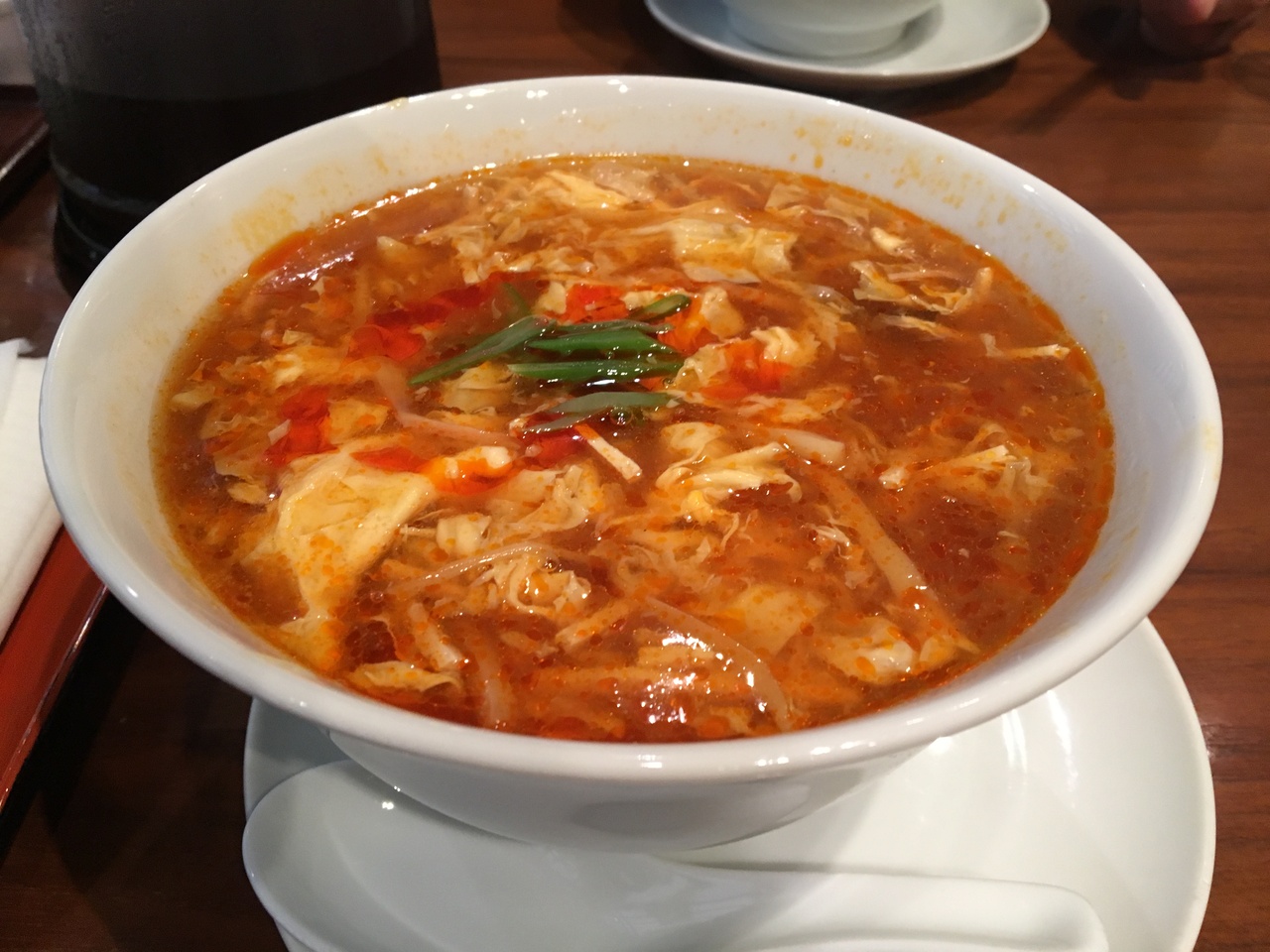 熱くてスパイシーで酸っぱいスープがエキサイティングです。トロミがあって冷めません。ボリュームもあるので、食べ終えた時にはちょっとした達成感をおぼえました。汗をかいて少し体温も下がったようです。