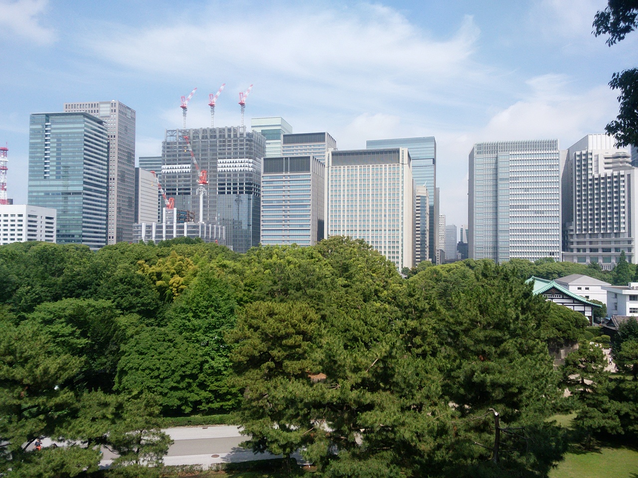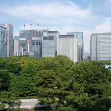 皇居の東御苑内を散策していると、展望台は、江戸城本丸跡の西側、ちょうど白鳥濠の脇の高台にありました。現在は、大手町などの高層ビル街を眺めることができるので景観的にはとても良い場所でした。東御苑を散策する際は立ち寄ってみてください。