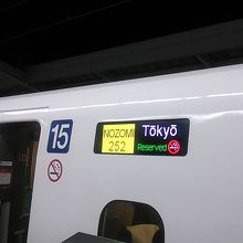 JR東海のN700系が使用され、のぞみ号の為、16両編成での運転でした。参考までに自由席は1~3号車の3両です。