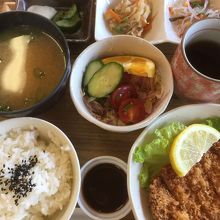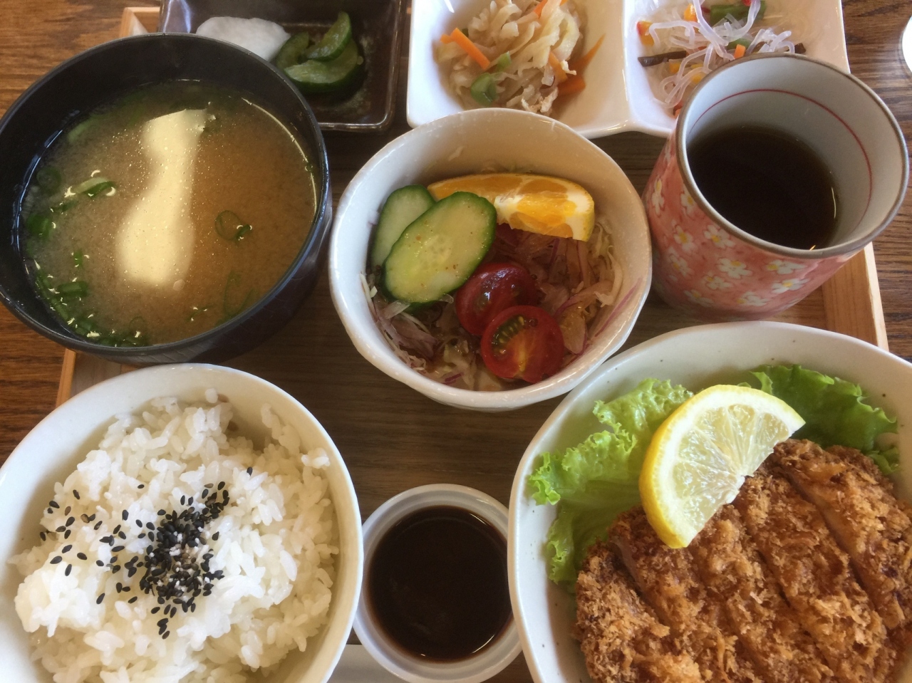 場所は金屋の市街地から数キロ離れた国道沿いにあります。ここで昼食をとるために、レストランで日替わりランチを堪能しました。パッと見た目は女性向けの量でしたが、ご飯がおかわり自由だったのは嬉しい限りでした。