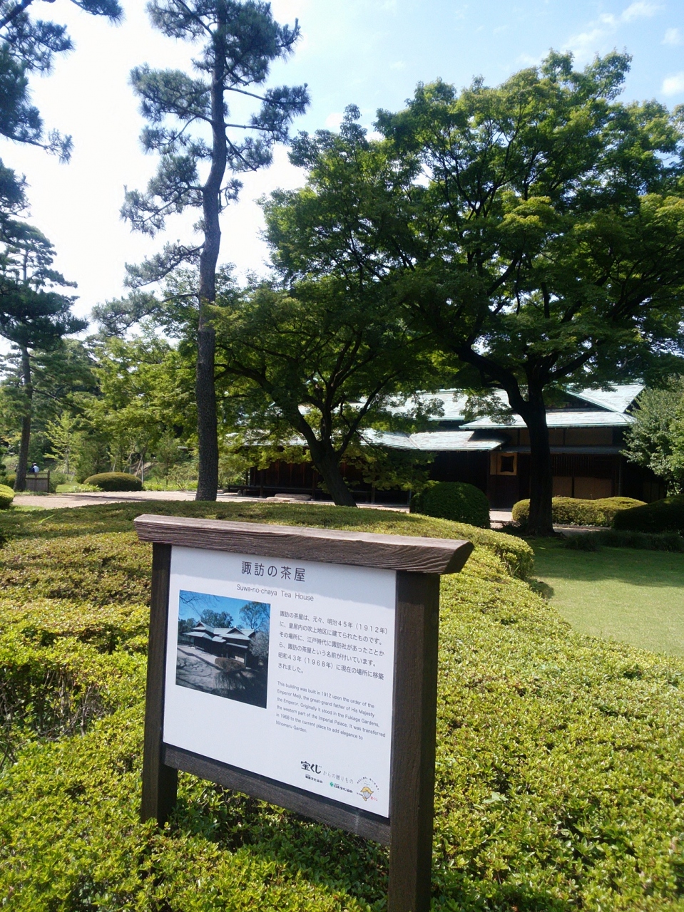 諏訪の茶屋は、「47都道府県の木」が植えられているエリアのすぐ脇にありました。明治時代、皇居の吹上地区に建てられたものを東御苑が一般公開されたときに移設それたものだそうです。遠くからしか見学をすることはできませんでしたが、遠くからでもかなり立派な建物で印象的でした。