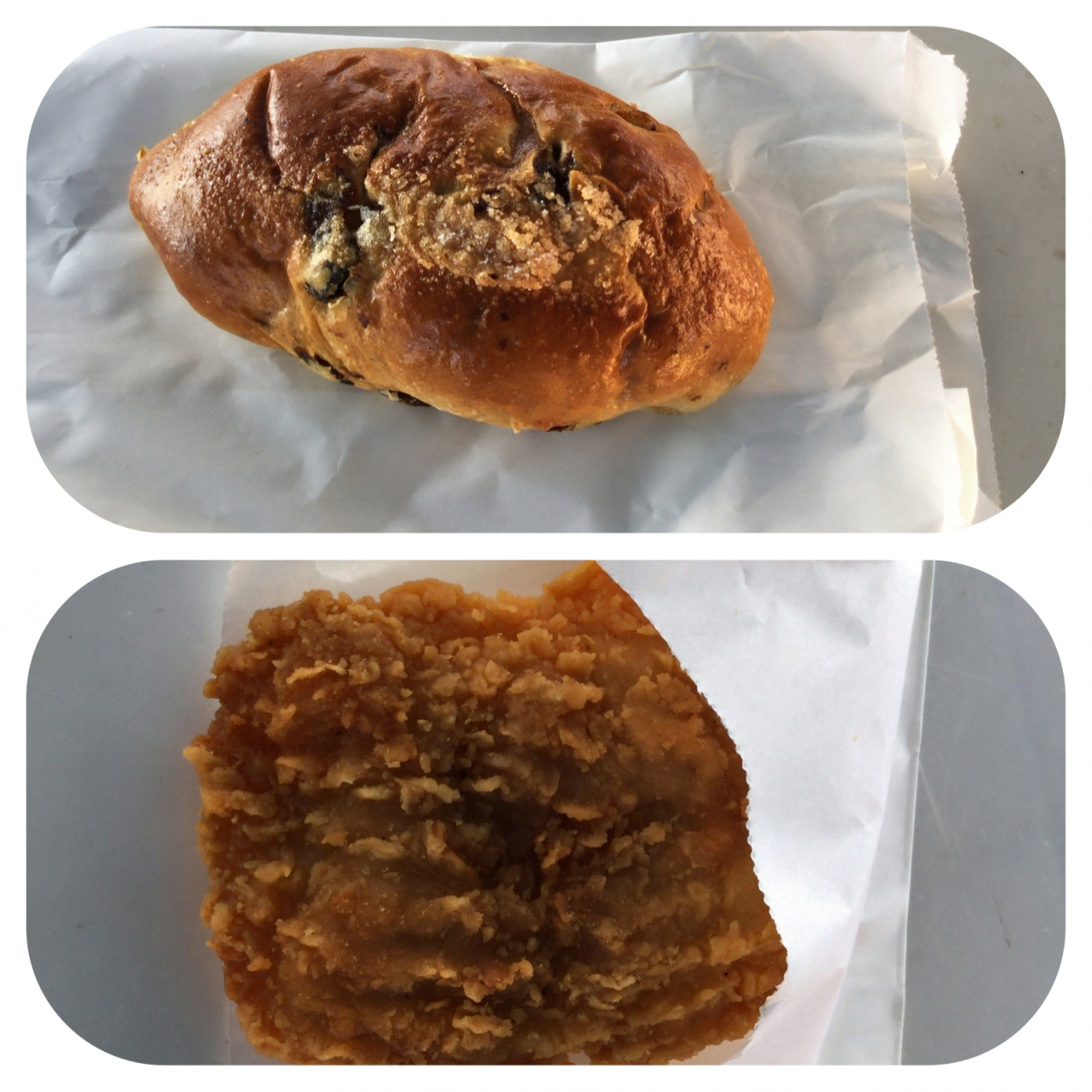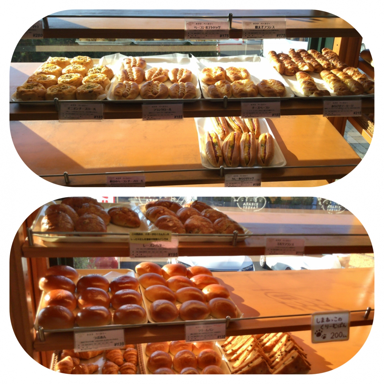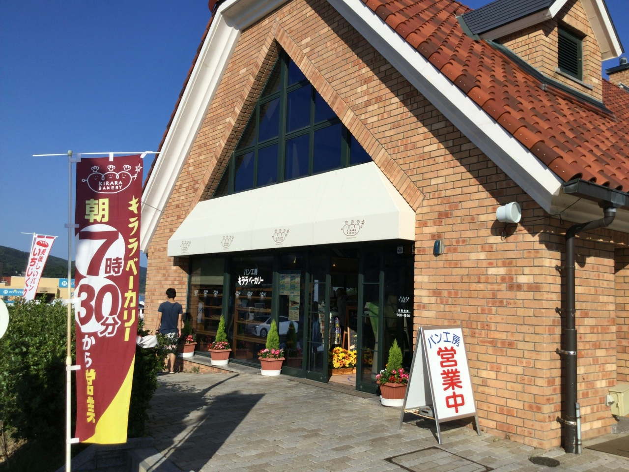 道の駅キララ多岐の敷地内にキララベーカリーさんがあります。7時30分から営業して朝の焼きたてのパンがいただけます。開店と同時に沢山のお客様が入っていきます。いろいろとみて回っていると今焼きあがったばかりのパンが並びます。カレーパン、レーズンバターパン、クリームパン、チキンを買って外でいただきました。