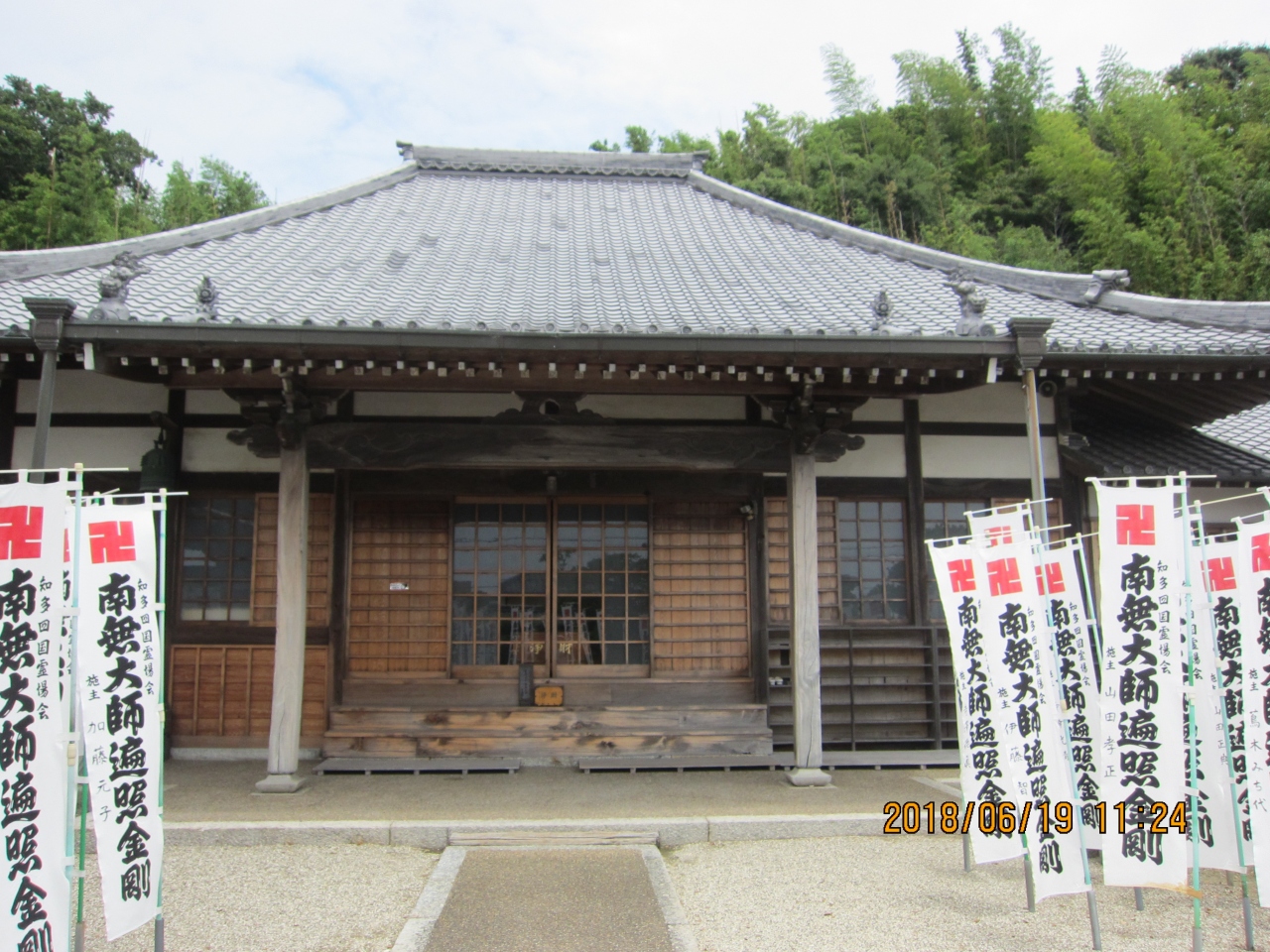 名鉄河和駅のすぐ近くにあるお寺です。 山門の屋根には、とても可愛らしいシャチホコが、2対向かい合って、取り付けられています。 本堂と弘法堂は、コンクリートの通路で結ばれ、それ以外は白い玉石が、一面に敷き詰められており、きれいに整備されています。