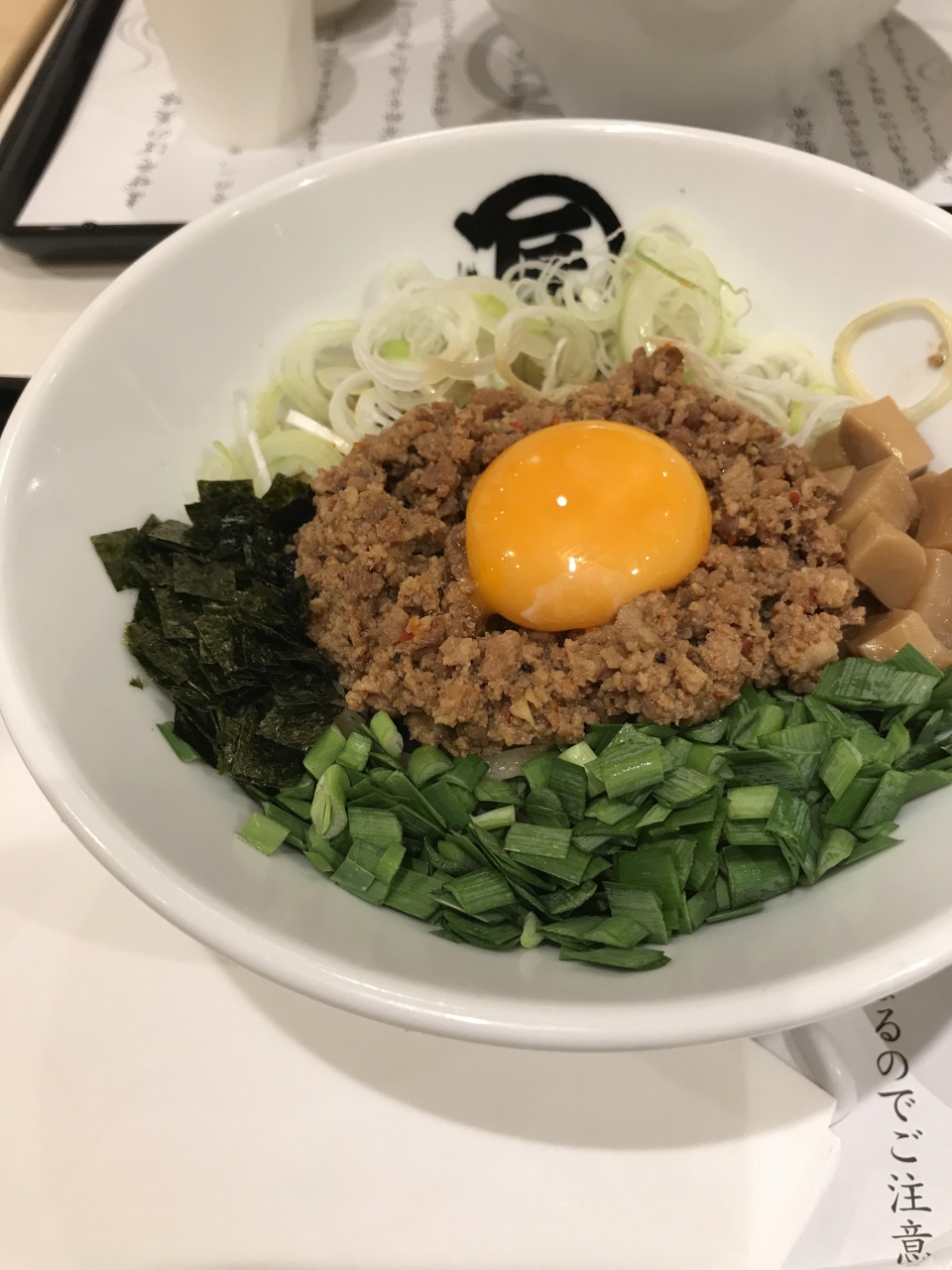 三番街にできたフードコート。なにか食べようとウロウロしておりましてここは麺だろう!ということでこちらの行列にまぎれてみました。めっちゃおいしいです。まぜ麺。最後にごはんをいれて具と混ぜ合わせます。満腹でした。